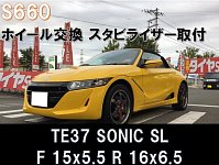 いつもタイヤ館岩出のホームページをご覧頂きありがとうございます! S660のホイール交換とスタビライザー取り付けを行いました♪ RAYS VOLK RACING TE37 SONIC SL フロント 15x5.5 4/100 リア 16x6.5 4/100 またまたTE37装着です!! やっぱり人気のTE37♪♪スポーティーなお車にはよく似合います!...