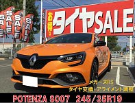 いつもタイヤ館岩出のホームページをご覧頂きありがとうございます! メガーヌのタイヤ交換とアライメント調整を行いました!! 交換するタイヤはこちら! タイヤ:POTENZA S007 サイズ:245/35R19 認証タイヤへと交換です☆ 輸入車やランフラットタイヤの交換もお任せ下さい! 片ベリしているという...
