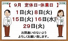 ☆☆☆9月15(火)・16日(水)は定休日です♪☆☆