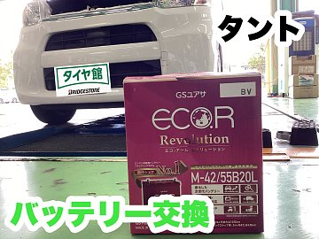 いつもタイヤ館岩出のホームページをご覧頂きありがとうございます! タントのバッテリー交換のご紹介です☆ GSユアサ エコアールレボリューションM-42 アイドリングストップ車専用バッテリーで交換していきます! 取付完了♪♪ もちろんバックアップ電源を使用して、交換作業を行っておりますので 安...