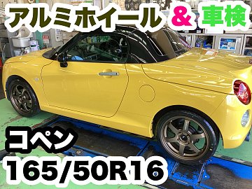 いつもタイヤ館岩出のホームページをご覧頂きありがとうございます! コペンのタイヤホイール交換と車検のご紹介です☆ タイヤ:POTENZA Adrenalin RE004 サイズ:165/50R16 ホイール:TE37 SONIC サイズ:16x5.5 4/400 +45 BR ロックナットセットもRAYSのジュラルミン、ブロンズカラーで装着します☆...