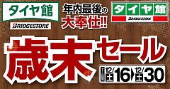 当店WEBをご覧いただき誠にありがとうございます。 最近すごく寒い日が続いていますが皆様、年末年始の準備はお済でしょうか? 【タイヤ館岩出】では12月30日(土)まで【歳末セール】を開催致しております。 またお正月に帰省、お出掛けされる方も多いと思いますがお車のメンテナンスは大丈夫ですか? 201...