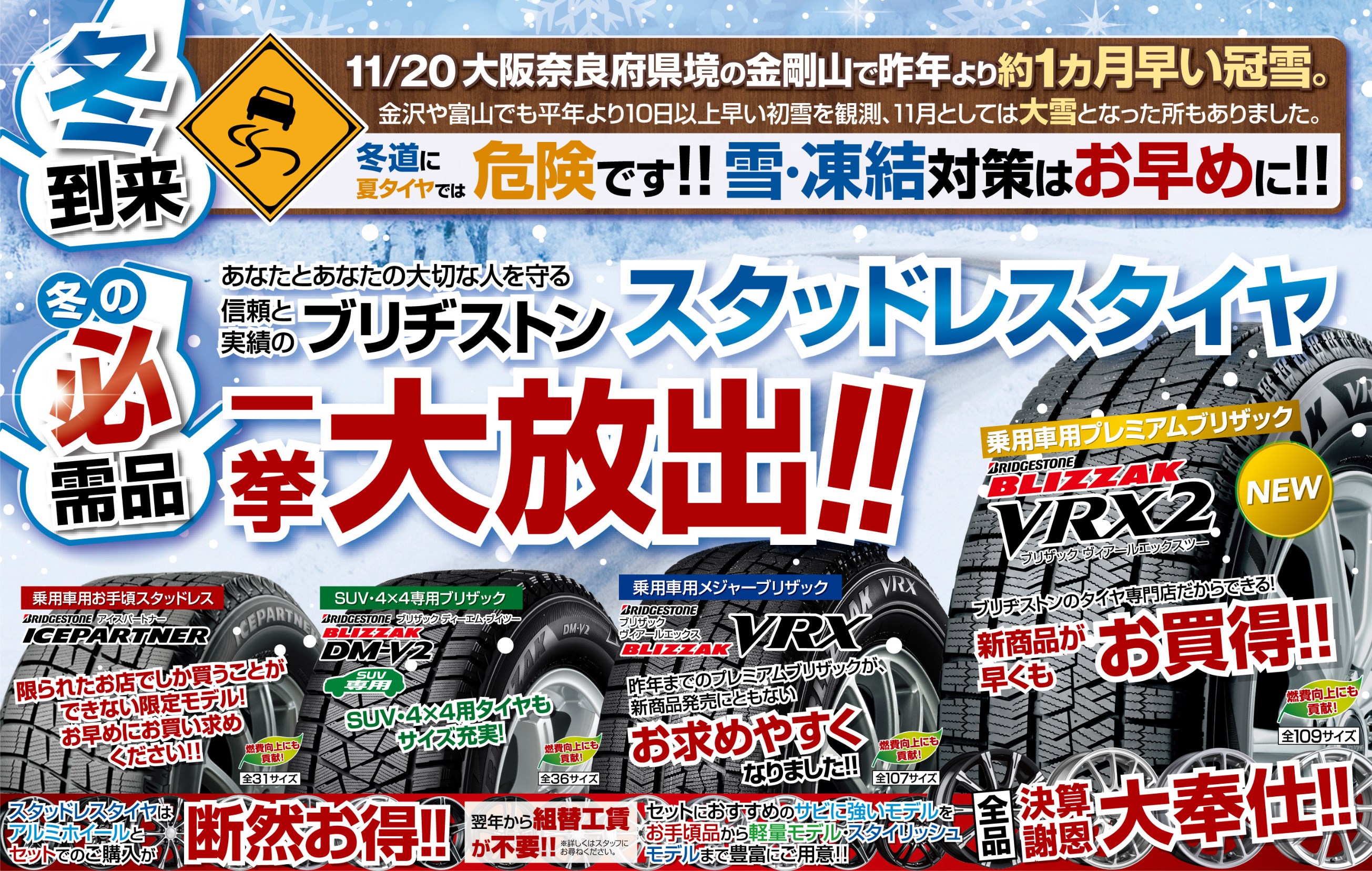 当店WEBをご覧いただき誠にありがとうございます。 最近すごく寒い日が続いていますが皆様、冬の準備、年末年始の準備はお済でしょうか? 只今【タイヤ館岩出】では12月10日(日)まで【決算セール】を開催致しております。 半年に1度の決算セールの為、お客様のご期待にお応えできるよう頑張ります...