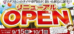 当店WEBをご覧いただき誠にありがとうございます。 【タイヤ館岩出】では只今【リニューアルオープンセール】を大好評開催中です。 10月1日(日)までですが景品もまだもう少し残っていますのでタイヤを買うなら 今がチャンス!! 皆様のご来店お待ちいたしております。