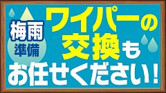 今年も梅雨の時期がやってきますね。 ジメジメと蒸し暑い梅雨… お車でのお出掛けでは、ワイパーの使用が増えてきます。 最近拭き取りが悪い、音が出るようになったなど、気になっている点はないでしょうか? 当店ではワイパーの交換を行っております。 梅雨入り前にお車のメンテナンスを行ってみて...