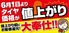 緊急大売出し!!【6月1日よりタイヤ価格が値上がります】