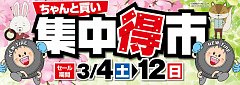 3月4日から開催いたしておりました 【集中得市】が3月12日に終了致しました。 この期間中にたくさんのお客さんにご来店いただき誠にありがとうございます。 またのお越しをスタッフ一同お待ち致しております。
