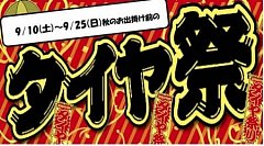 9/10日(土)から9月25日(日)まで 当店限定!!『タイヤ祭』を開催いたします☆ 秋の観光、レジャー、旅行などお出掛け前にタイヤ交換を済ませておくと より安心です。 ☆★☆当店ではミニバン専用設計タイヤも多数在庫あります☆★☆ またタイヤ館では一足早くスタッドレスタイヤ(冬タイヤ)のご予約も承ってお...