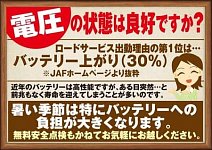 ホームページをご覧いただきありがとうございます。 日に日に暑さが・・・・ 梅雨入り予想は6月7日頃のようで・・・・ 暑い時期には・・・・バッテリーへの負担が大きくなります。 エアコンなどの使用や・・雨でのワイパー使用も!! ご使用のバッテリーの年数や 電圧の状態は良好ですか?? バッ...