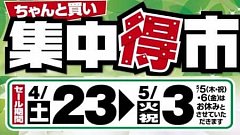 『集中得市』セール 本日、5月3日(火曜日)をもちまして終了いたしました。 多くのお客様にご来店いただきありがとうございました。 期間中、タイヤも・・・ホイールも・・・車高調も・・・ ご購入とご注文いただきありがとうございました(^^)