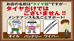 タイヤ館ですが・・・ タイヤだけじゃないんです♪♪お車のメンテナンスもお任せ下さい(^^) エンジンオイルも・・・ (ゴールデンウィークでの長距離のお出掛け後に) バッテリーも・・・ (暑い時期になる前に・・) ワイパーも・・・ (梅雨準備はいかがでしょうか?) 無料安全点検実施中!! ...