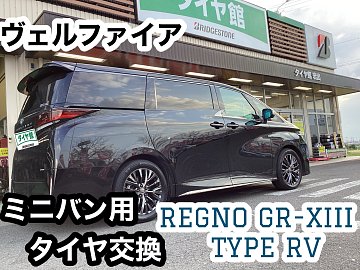 いつもタイヤ館岩出のホームページをご覧頂きありがとうございます! ヴェルファイアのタイヤ交換のご紹介です☆ タイヤ:REGNO GR-XⅢ TYPE RV サイズ:225/55R19 旧モデルのREGNO GRVⅡよりも さらに乗り心地や後席の乗り心地が向上 ロードノイズ12%、パタンノイズ8%低減 軽快なハンドリングによるふ...