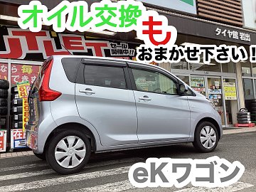 オイル交換”も”タイヤ館で出来ます♪初めての方も大歓迎です!タイヤの空気圧点検もついでにやりますよ~☆eKワゴン(B11)