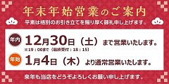 年末年始の営業日案内