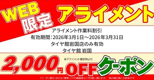 タイヤ館岩国では、毎週木曜日に女性がお得なレディースデイを開催しております。