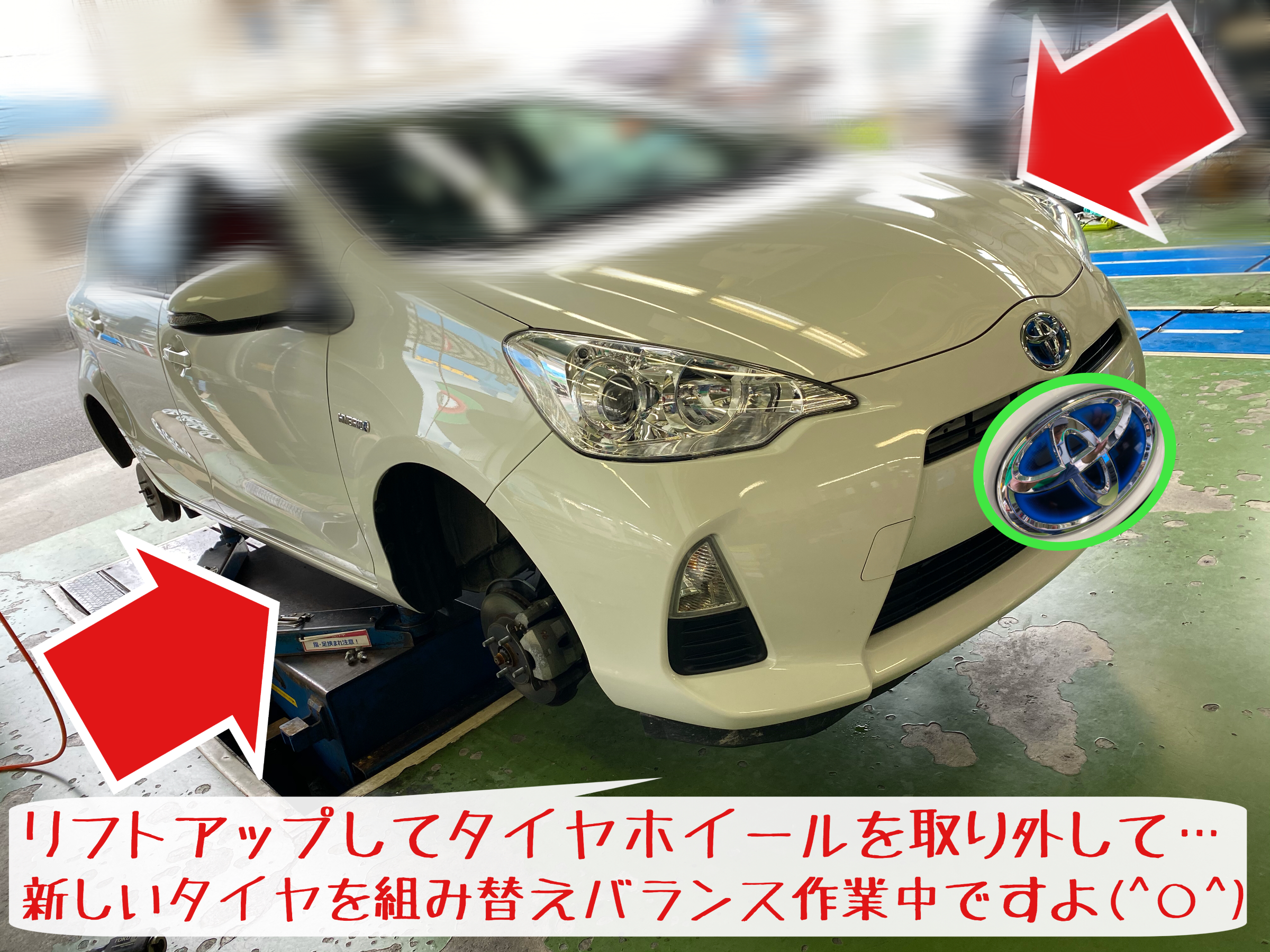 トヨタ アクア さんの数年使用されたタイヤを新しく交換するお手伝いですよ(^o^)