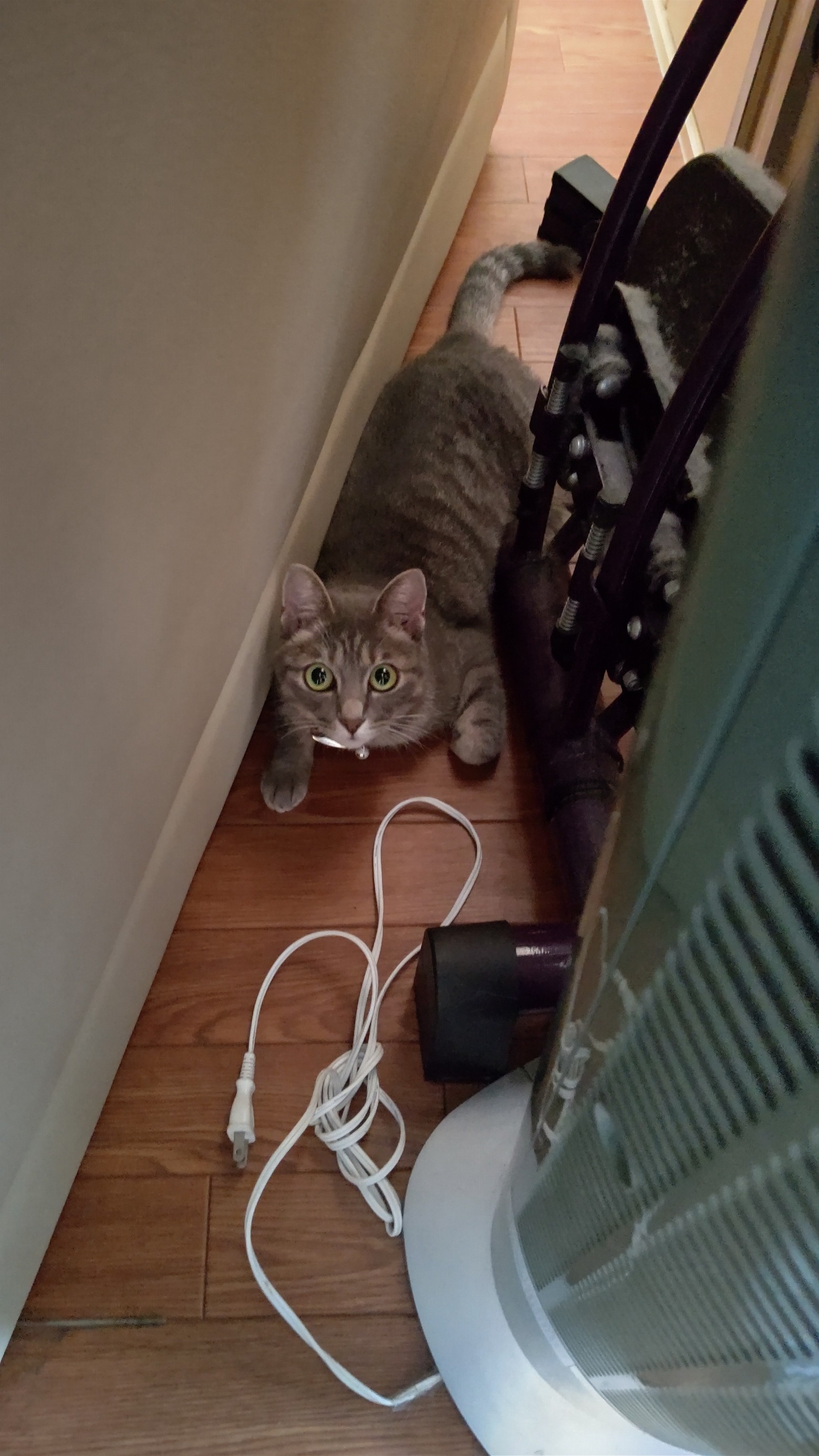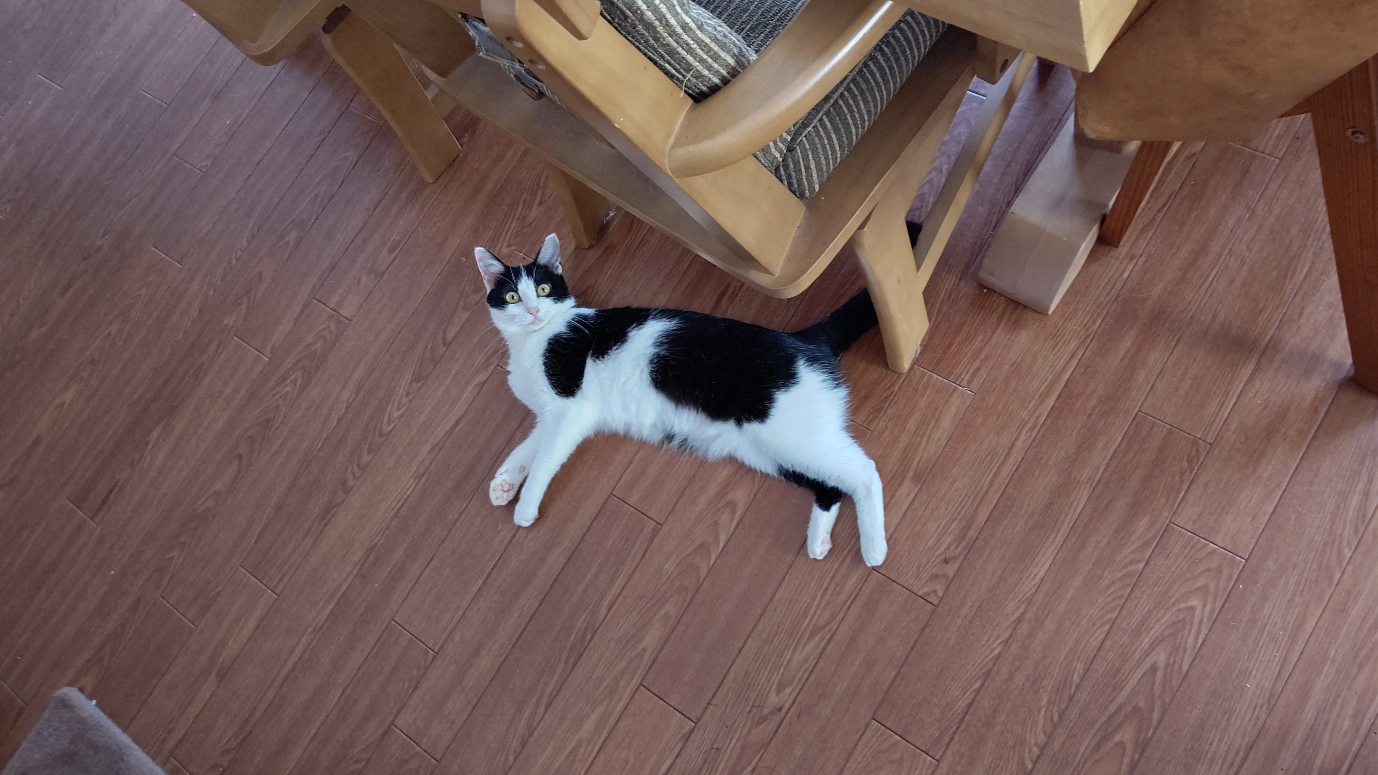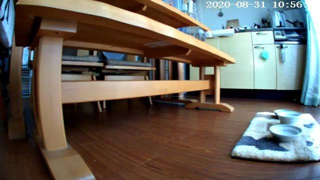 我が家のペットカメラでの画像で、ハチワレかサバトラが写ってます。