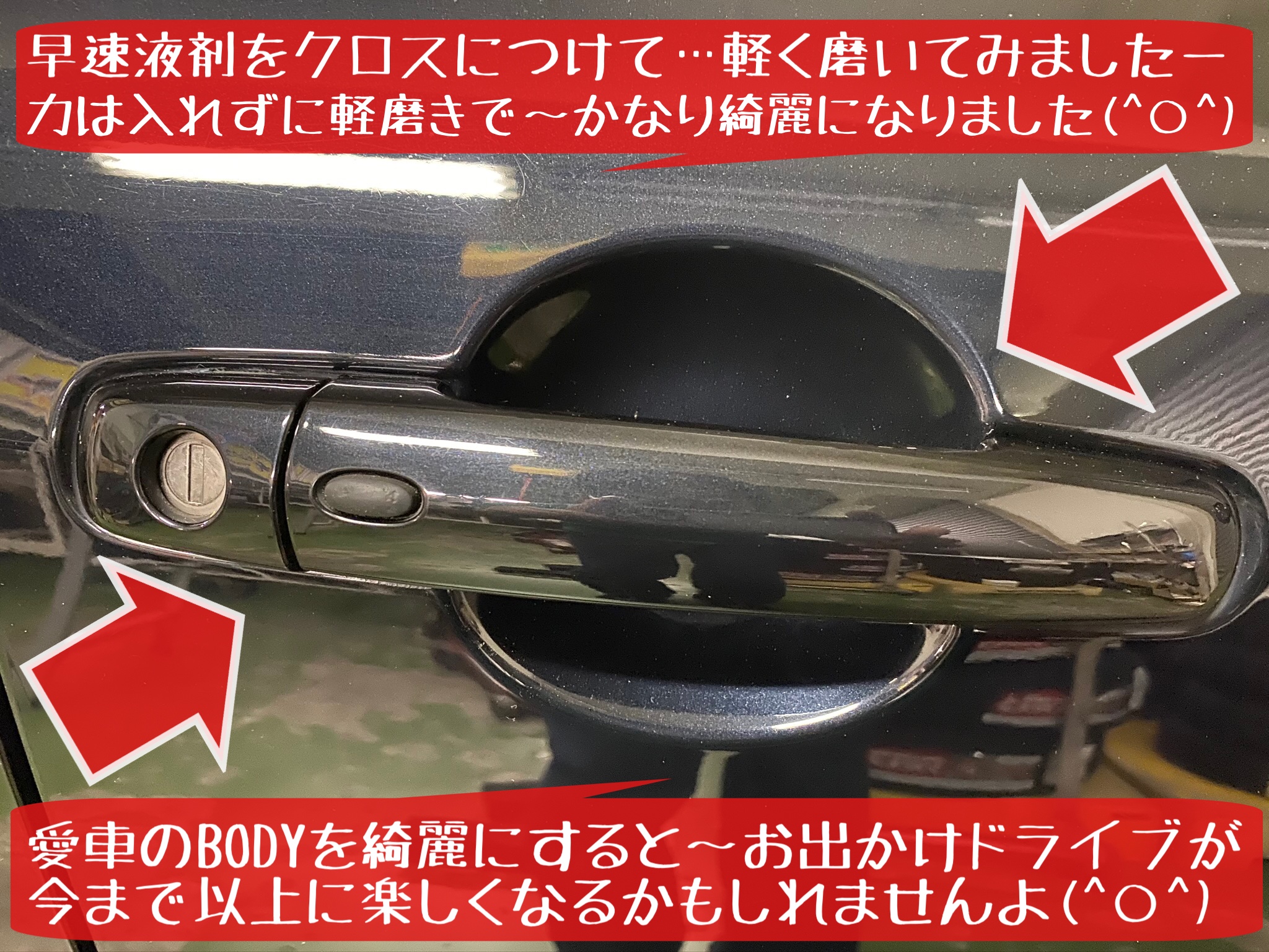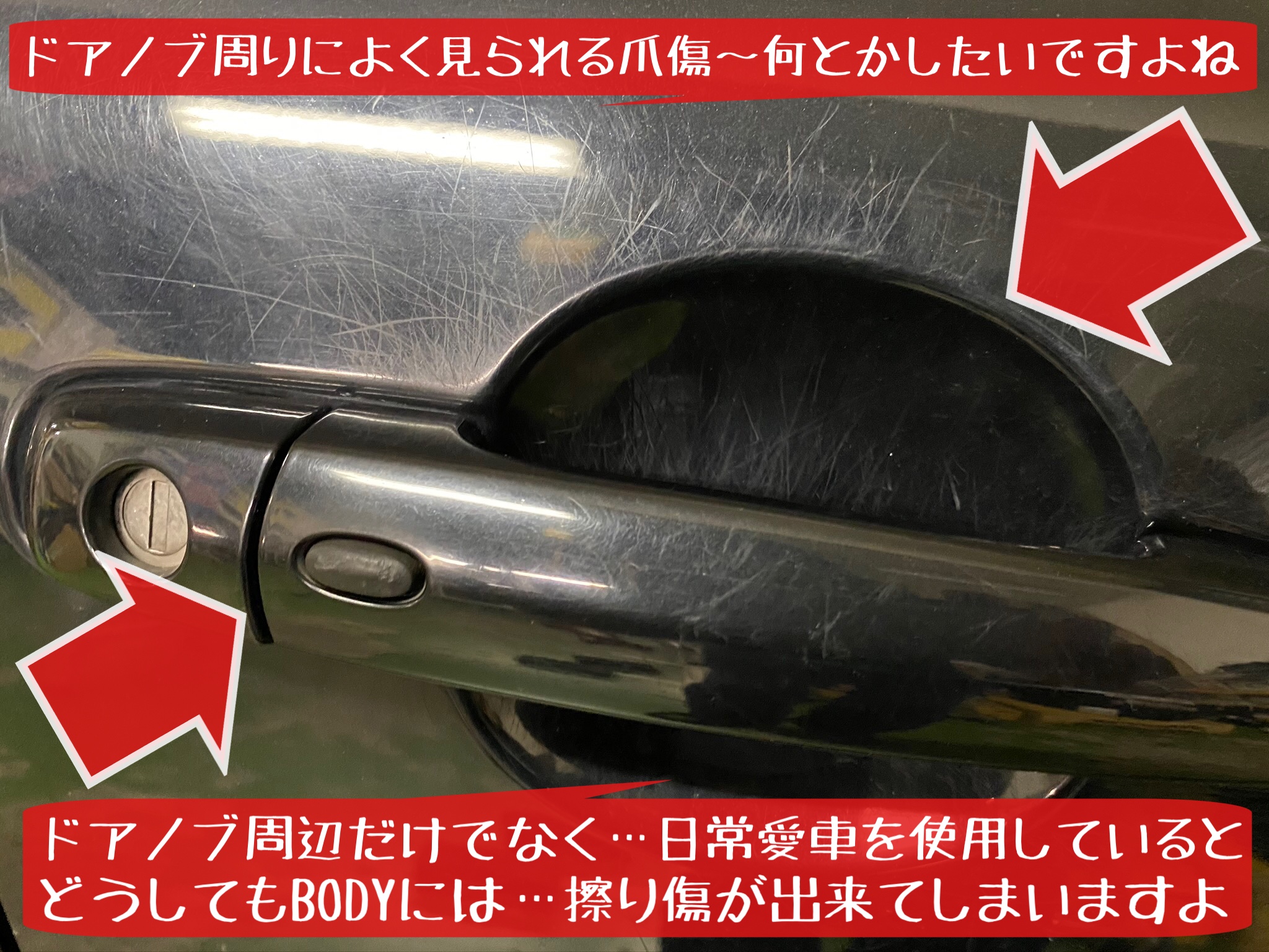 使用用途は色々ありますが…今回は気になる?目につく?愛車のドアノブ周辺の擦り傷に使用してみましょう!