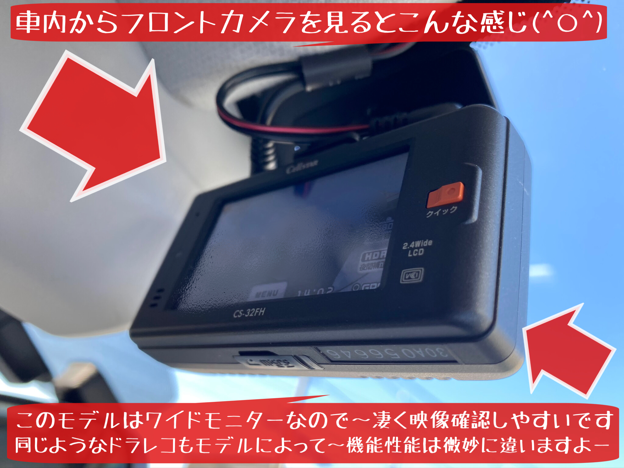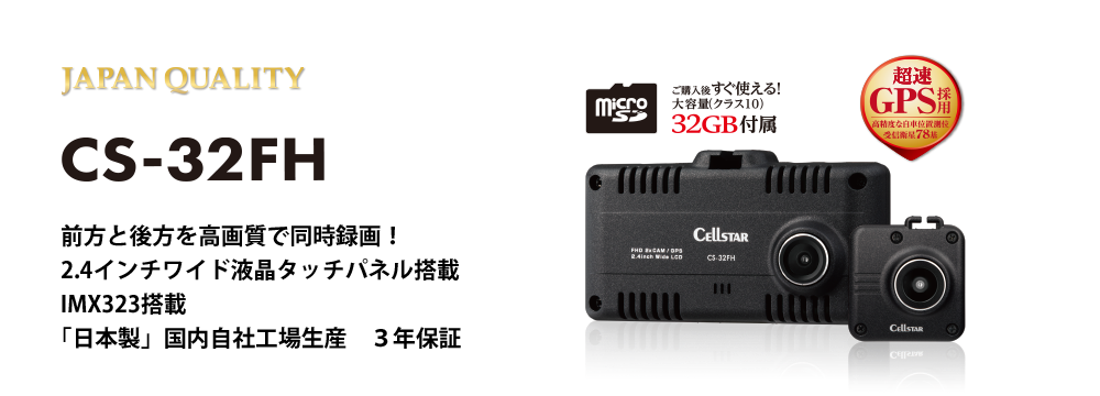 今回取付させて頂いた ドライブレコーダー ドラレコ は…セルスターさんの前後2カメラ録画モデル CS-32FH