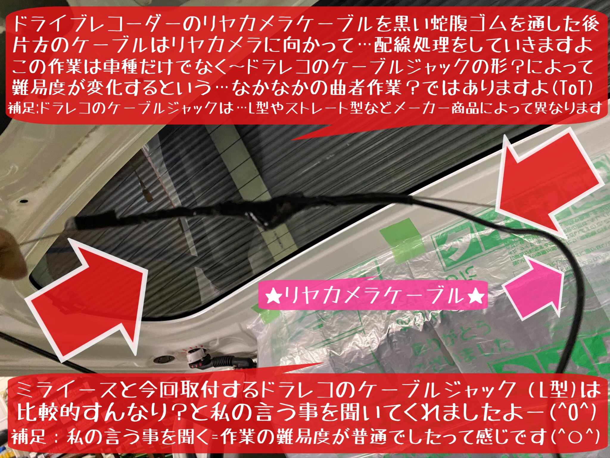 ダイハツ ミライース さんの ドライブレコーダー ドラレコ 取付②リヤカメラケーブル続編 ですよー(^○^)