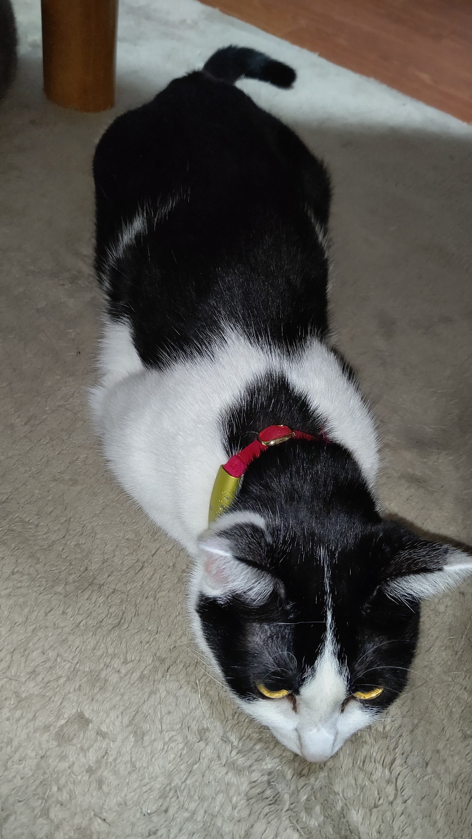 少しでもホットカーペットへの設置面積を増やす為にアゴまで付けてるハチワレ。