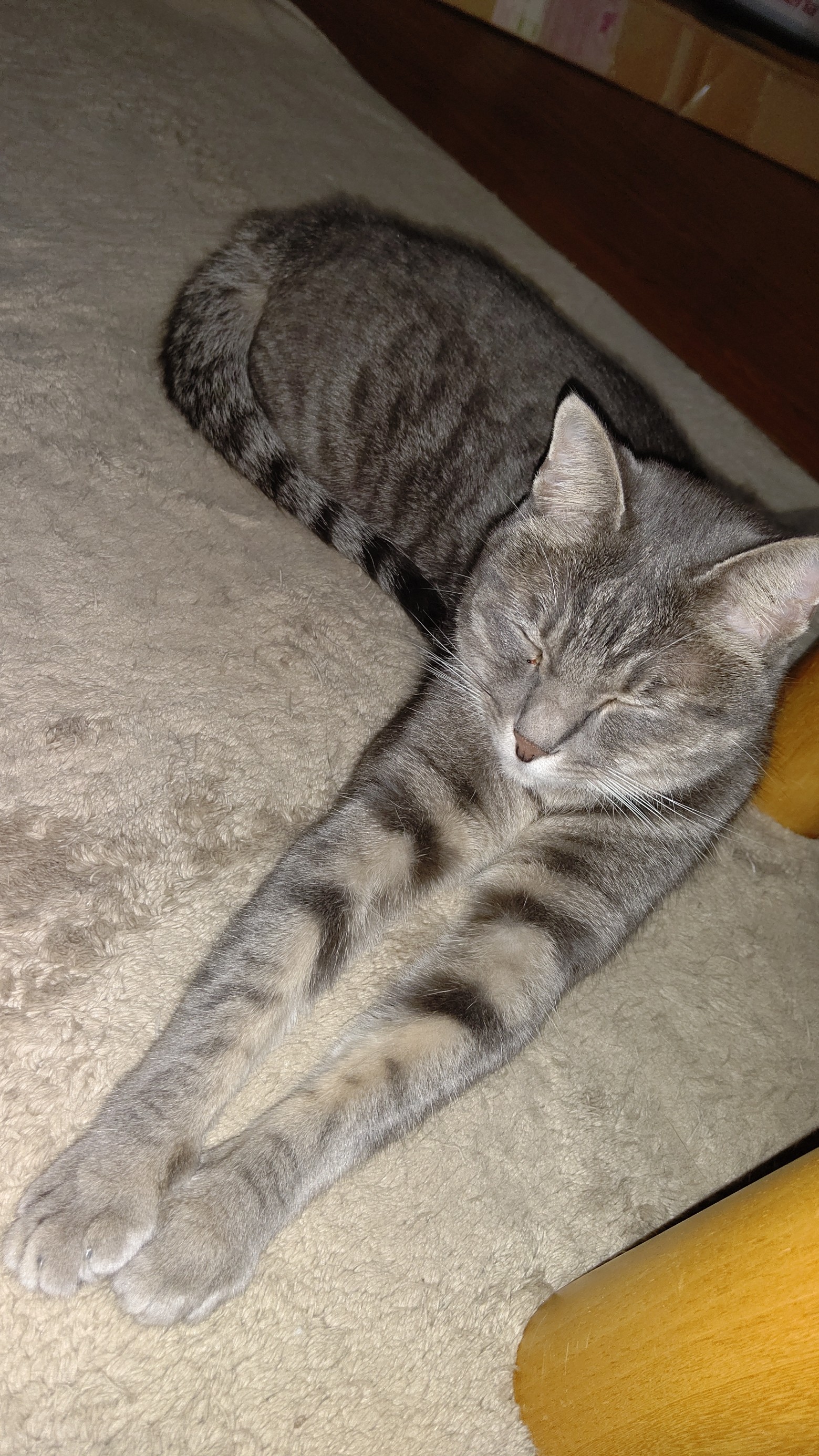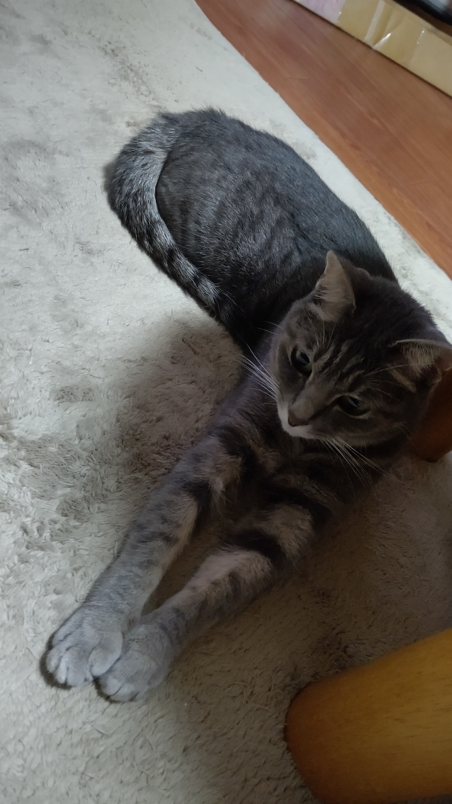 コチラはスフィンクススタイルで設置面積を増やしたサバトラ。
