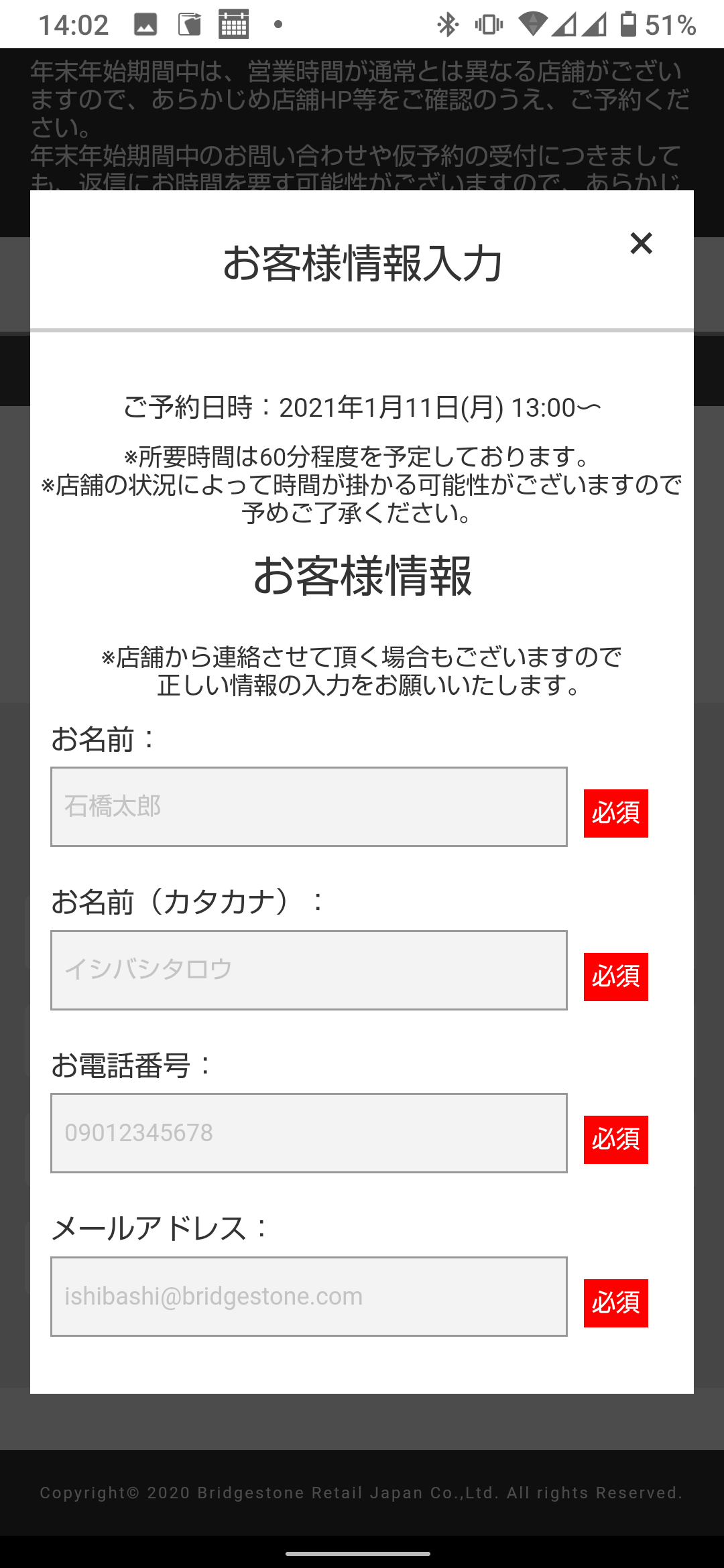 必須情報を入力してもらって送れば予約になります。