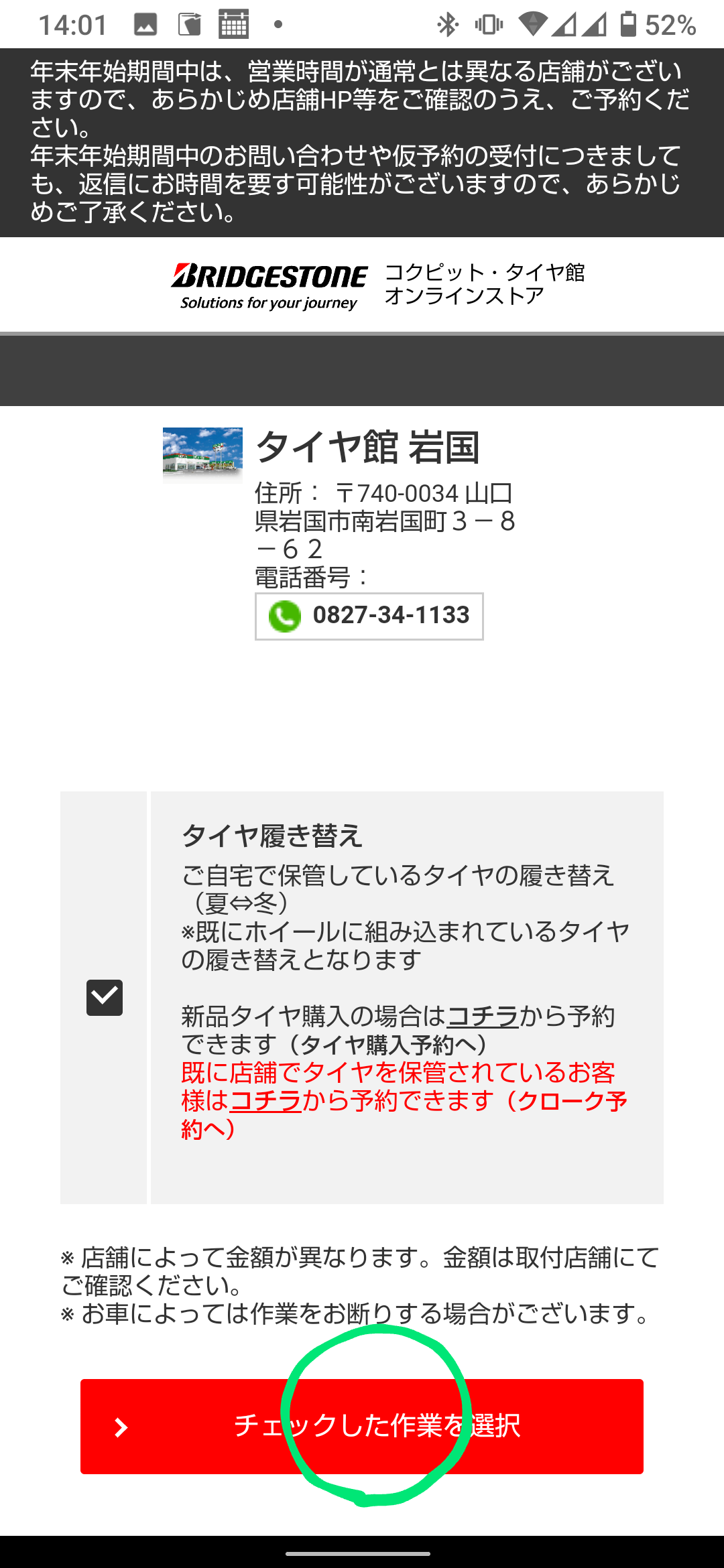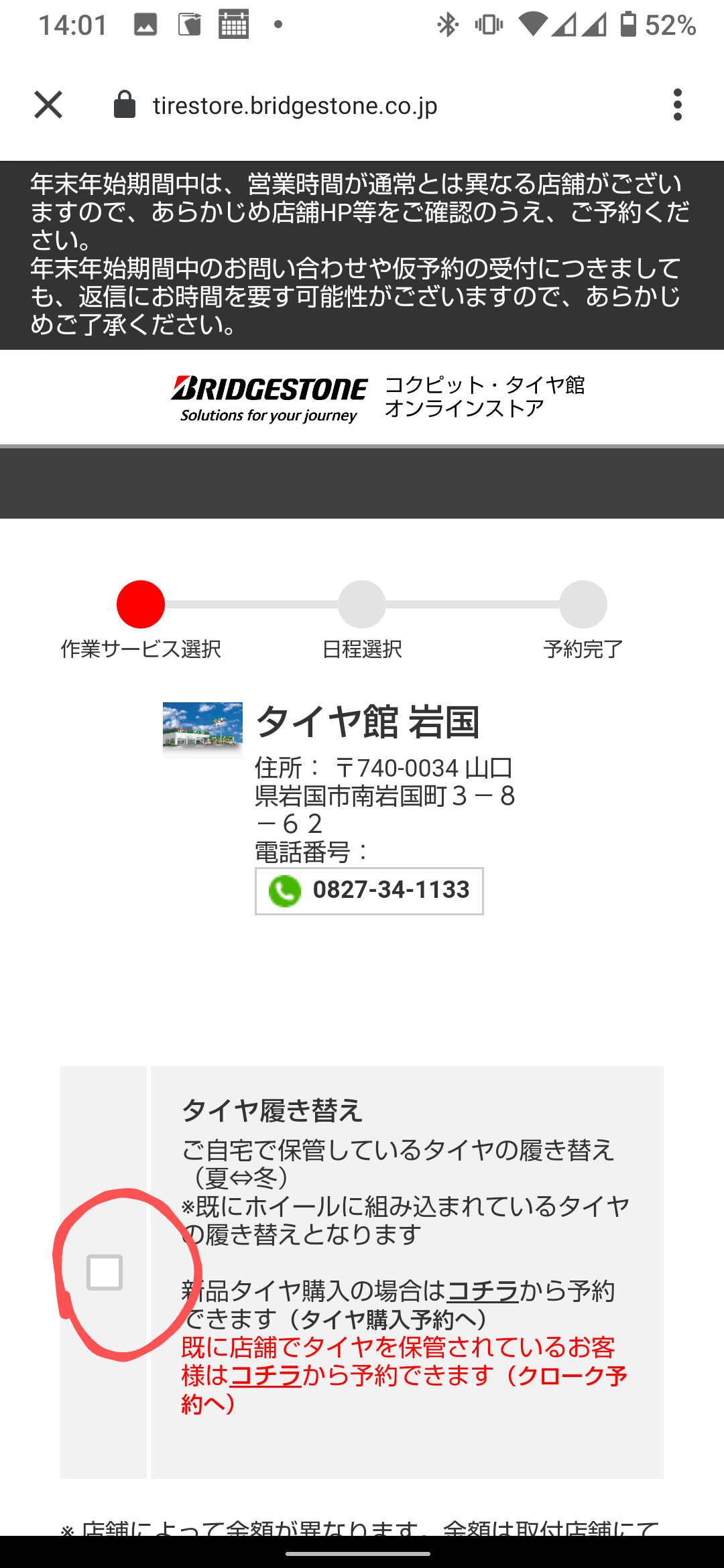 これらの予約作業を使っていただいて今後もタイヤ館岩国をよろしくお願いいたします。