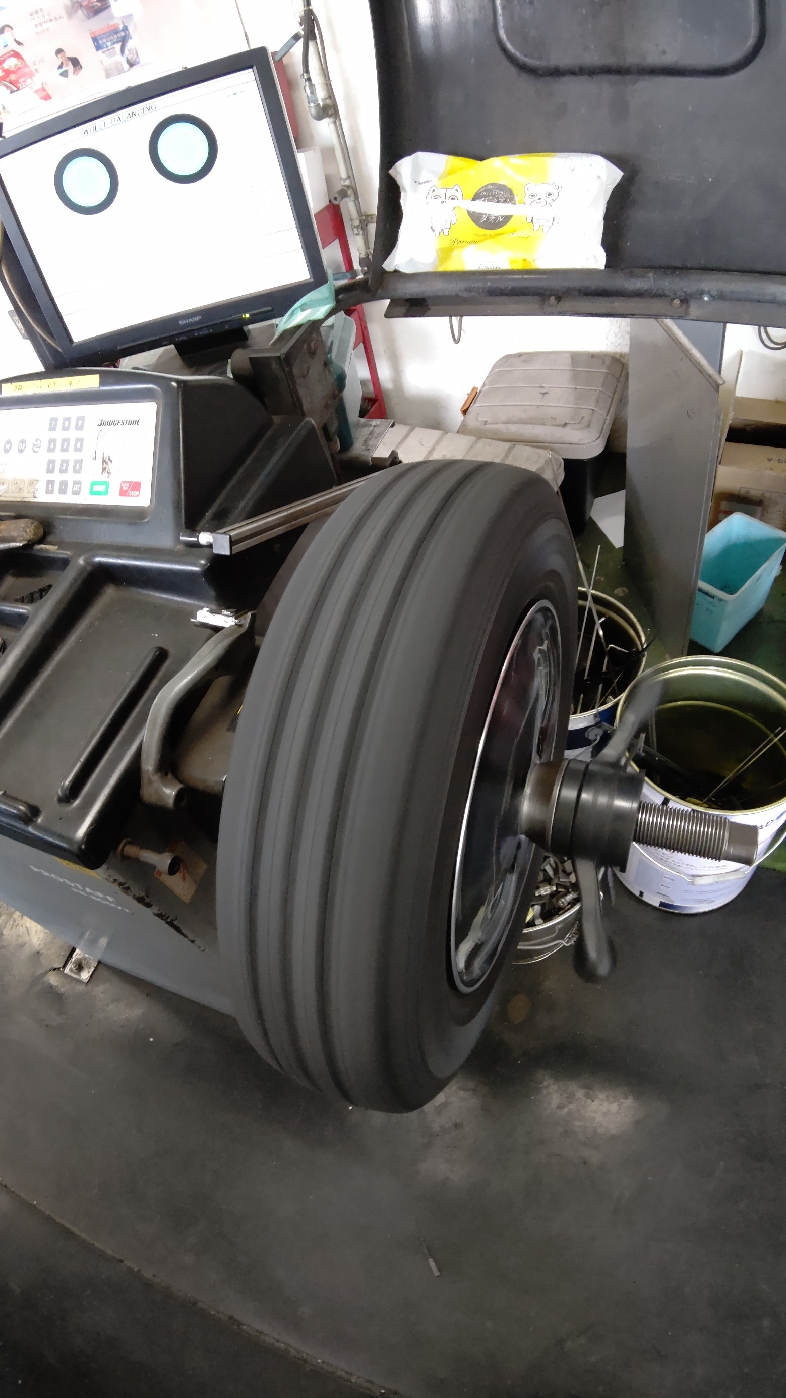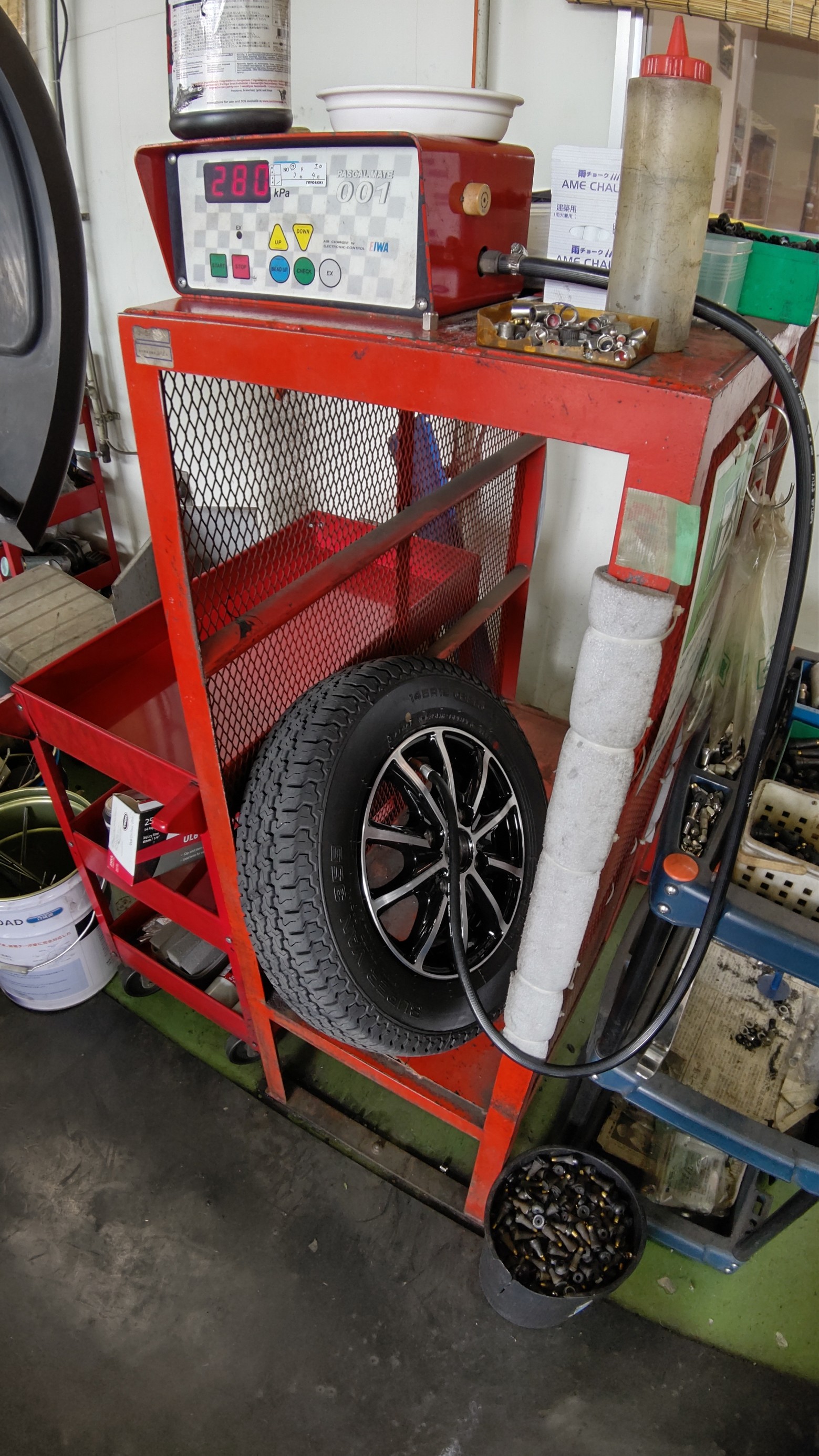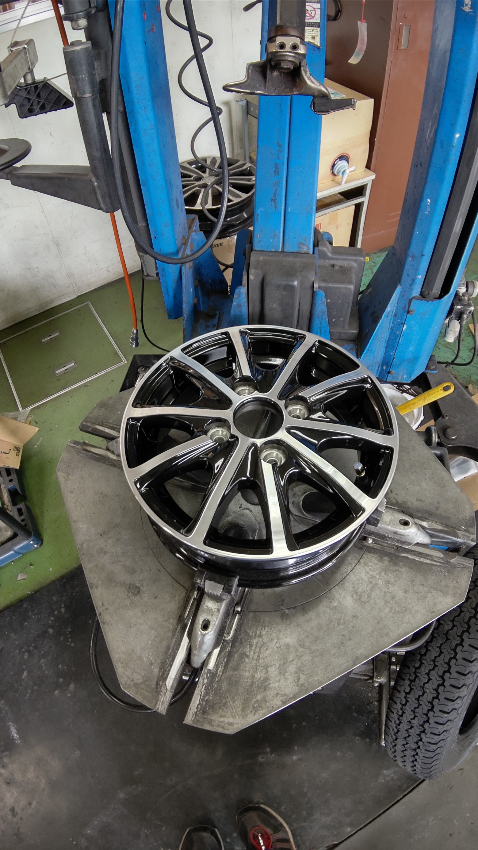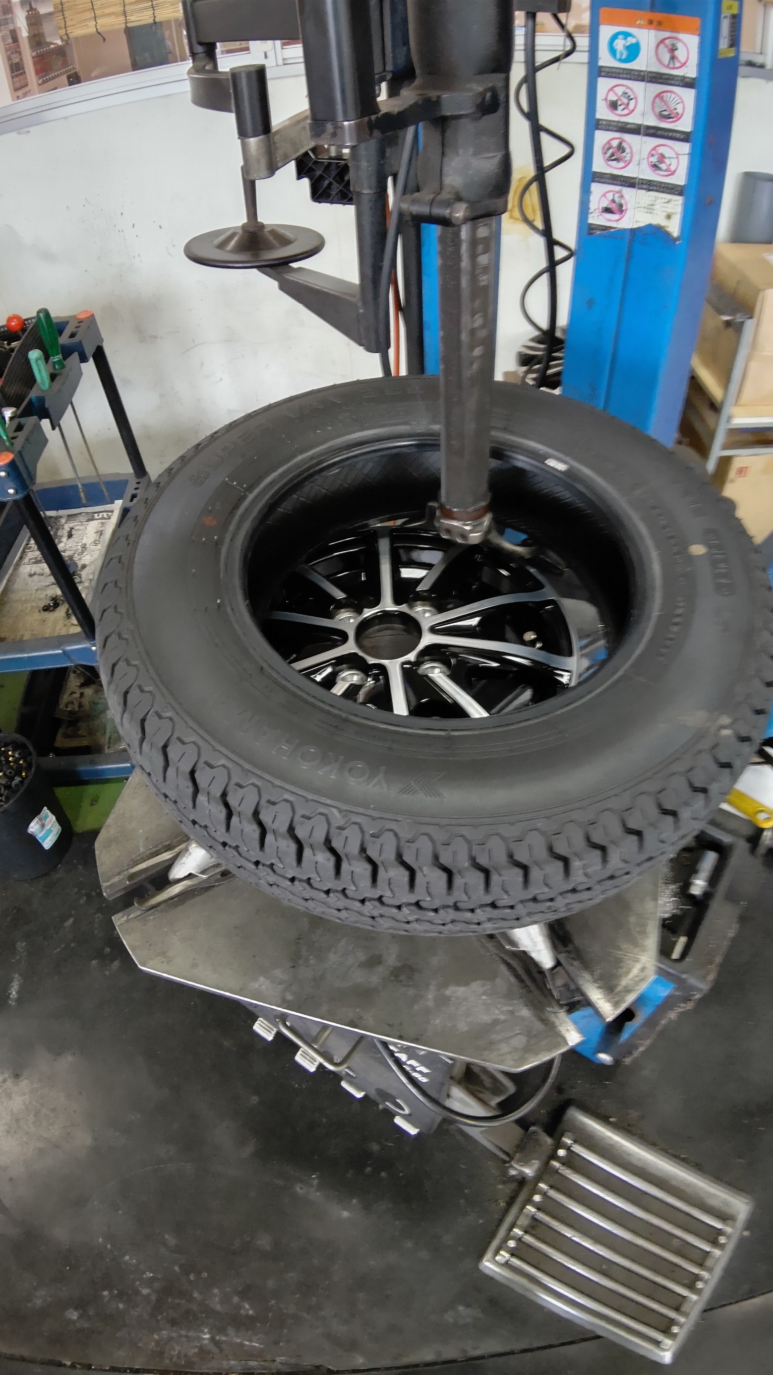 まずは今までスチールホイールからタイヤを取り外して、新しいホイールに組み付けしていきます。