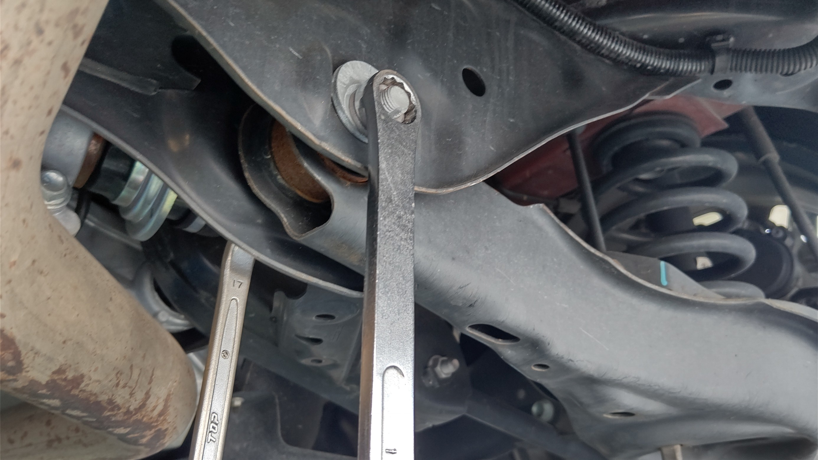 前後トー調整をして締め付け確認をし、路上で試乗して作業終了になります。