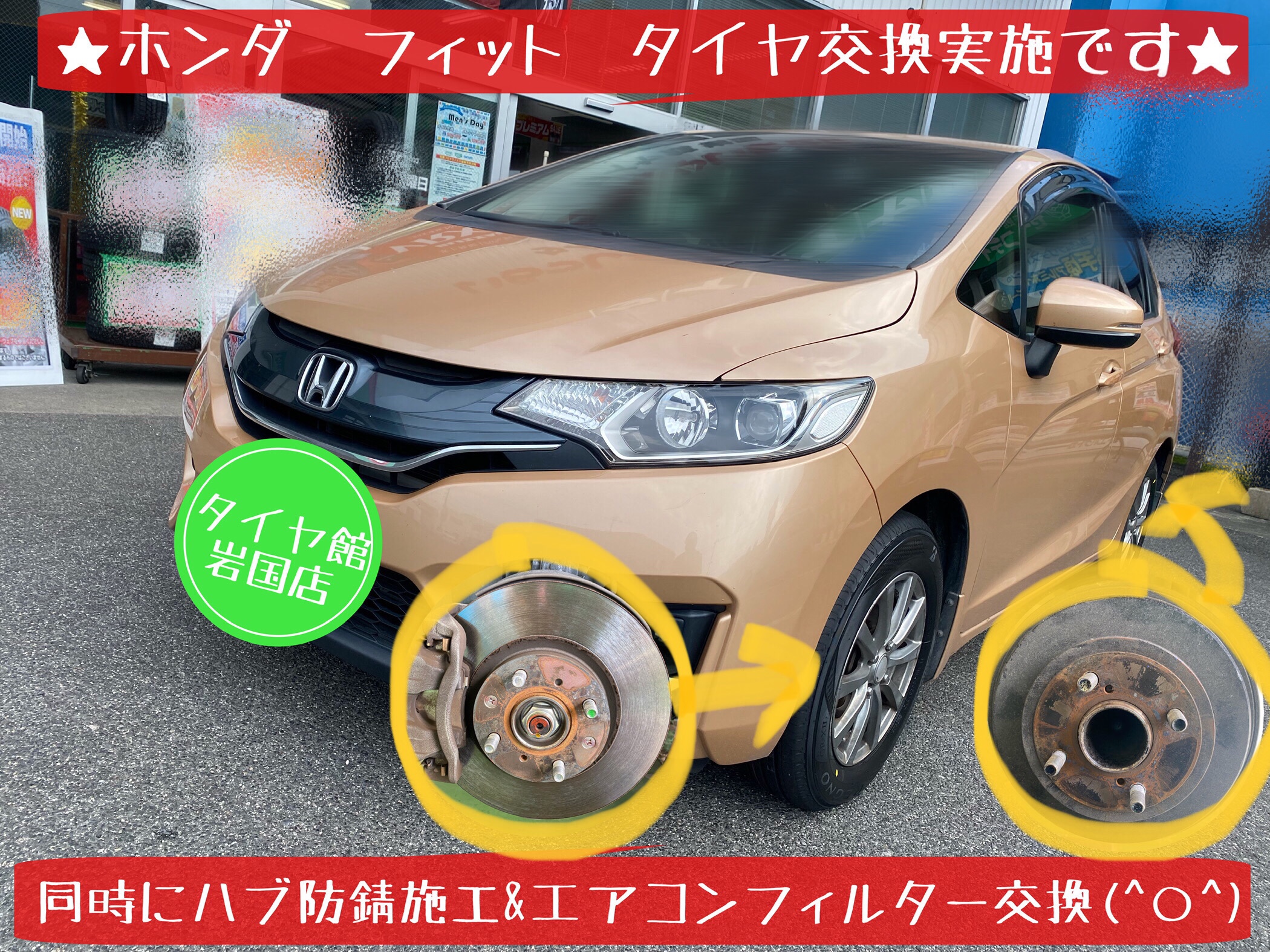⬇︎ ホンダ フィット タイヤ交換&ハブ防錆施工&エアコンフィルター交換 ⬇︎