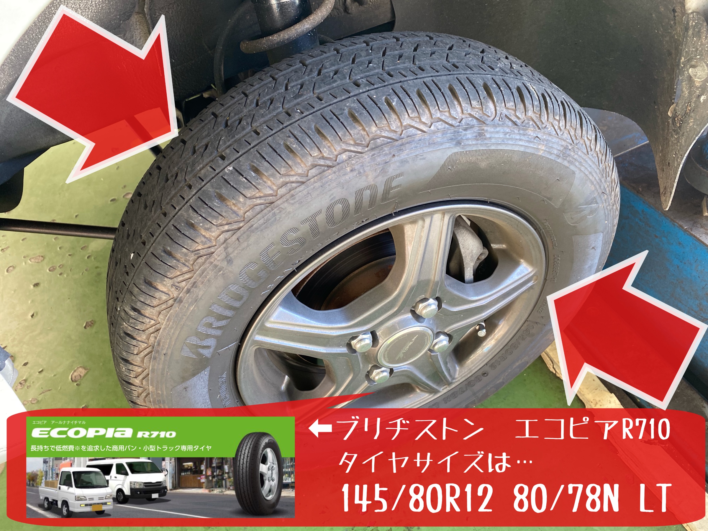 働く車 軽トラ 箱バン のタイヤは日々…重い荷物を乗せたり〜路地を走行したり〜ハンドルを据え切りしたり…一生懸命頑張ってくれているので〜普通の車以上にタイヤに負担はかかっていますよ!