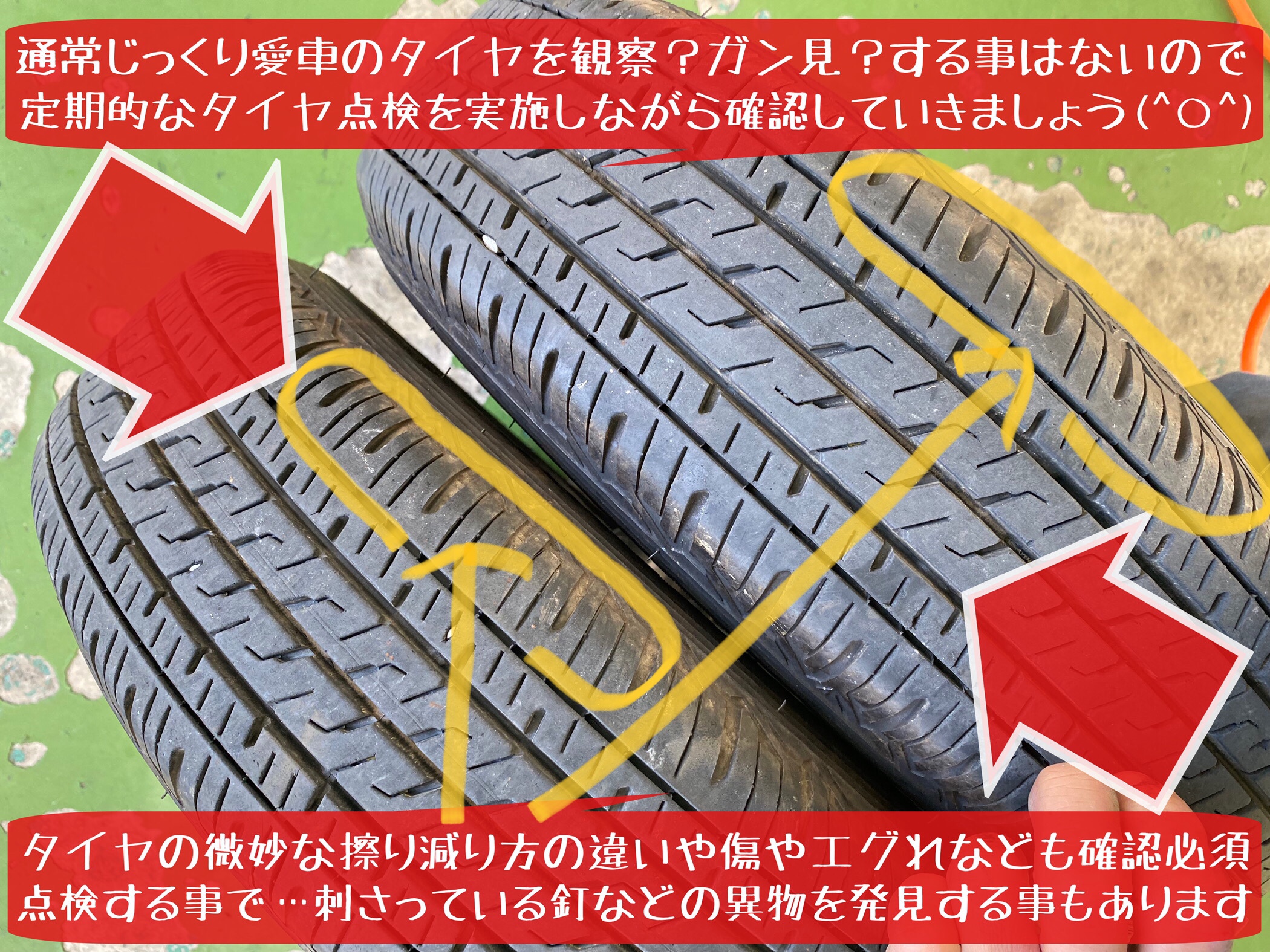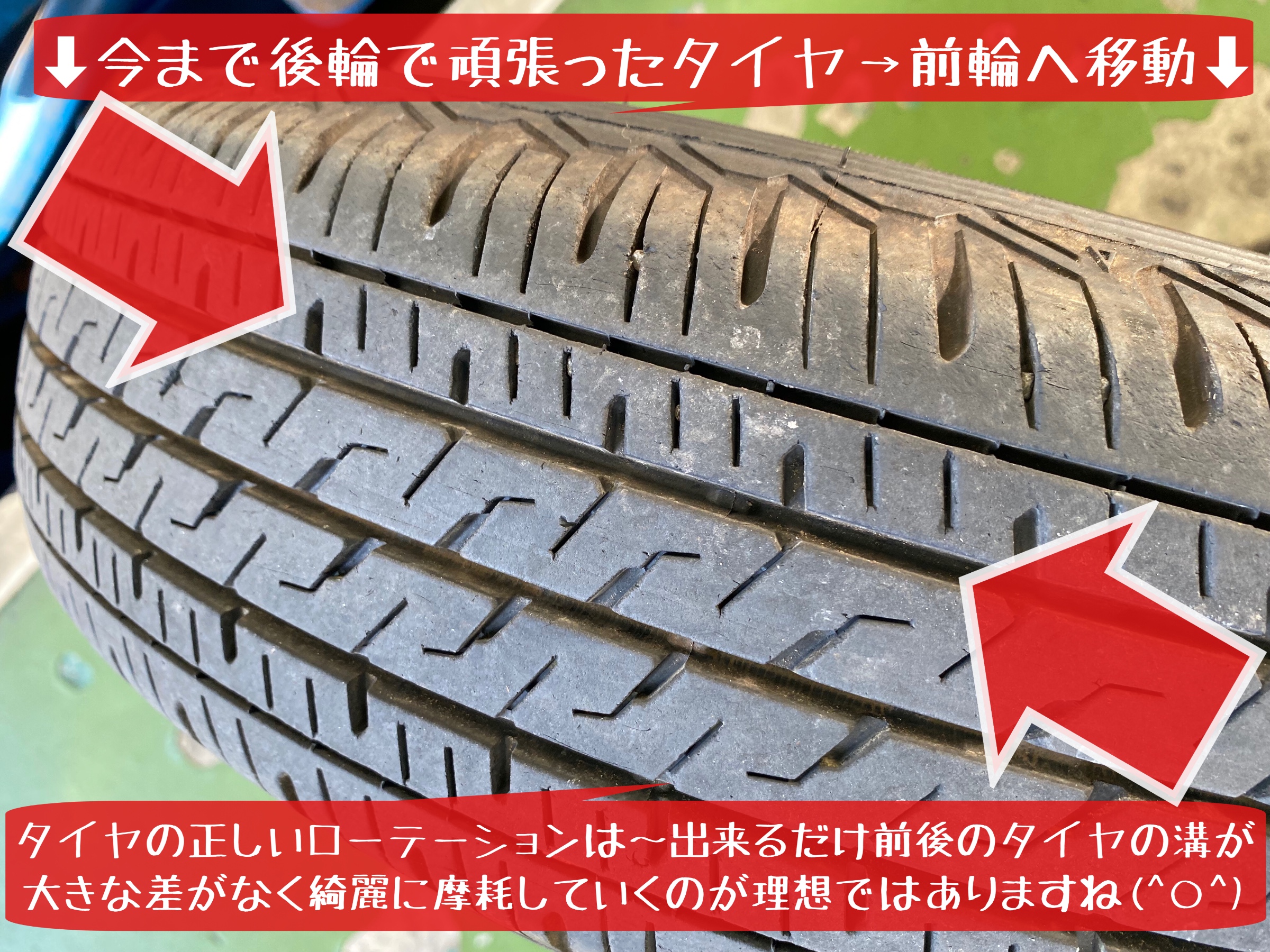 前後タイヤの減り方 摩耗具合 を確認してみましょう!
