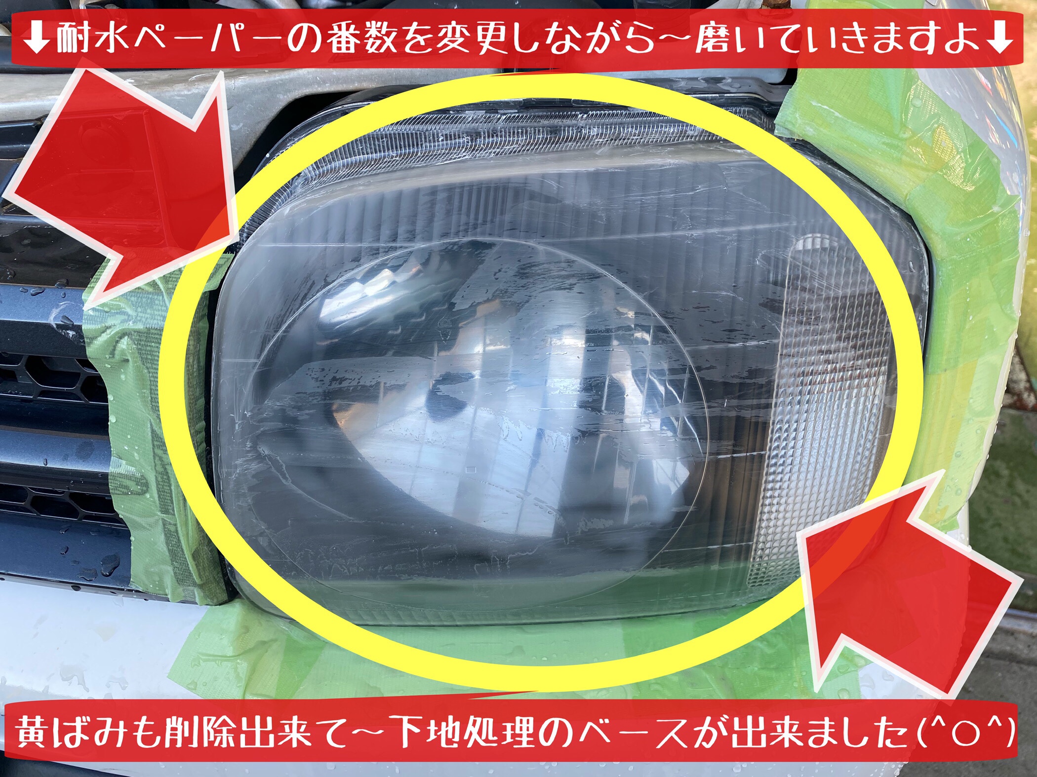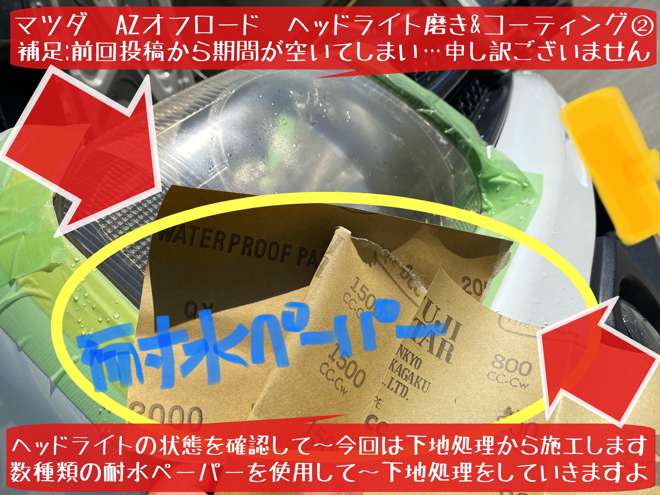 マツダ AZオフロード のヘッドライト磨き&コーティング施工② 下地処理編の紹介になります!
