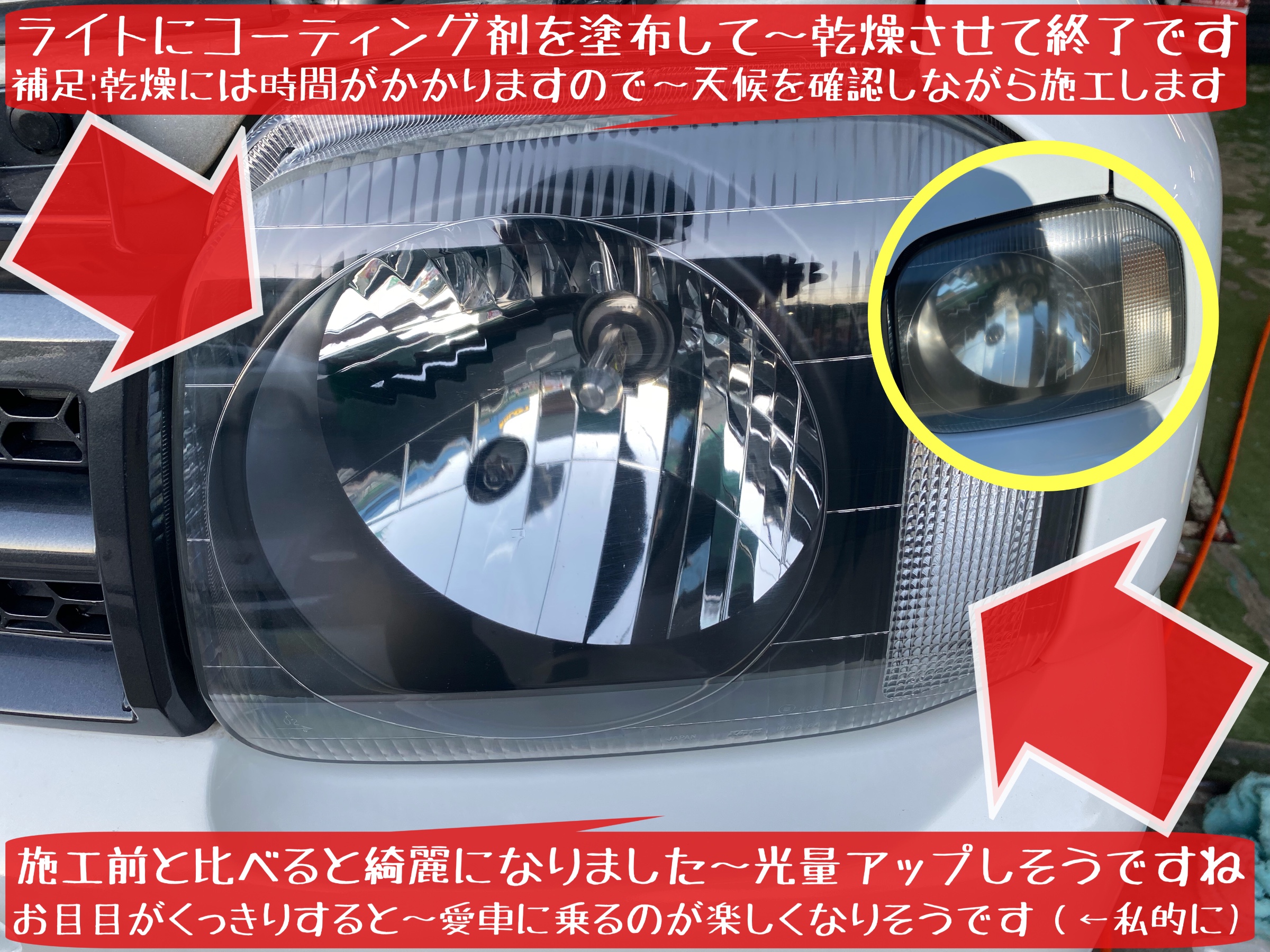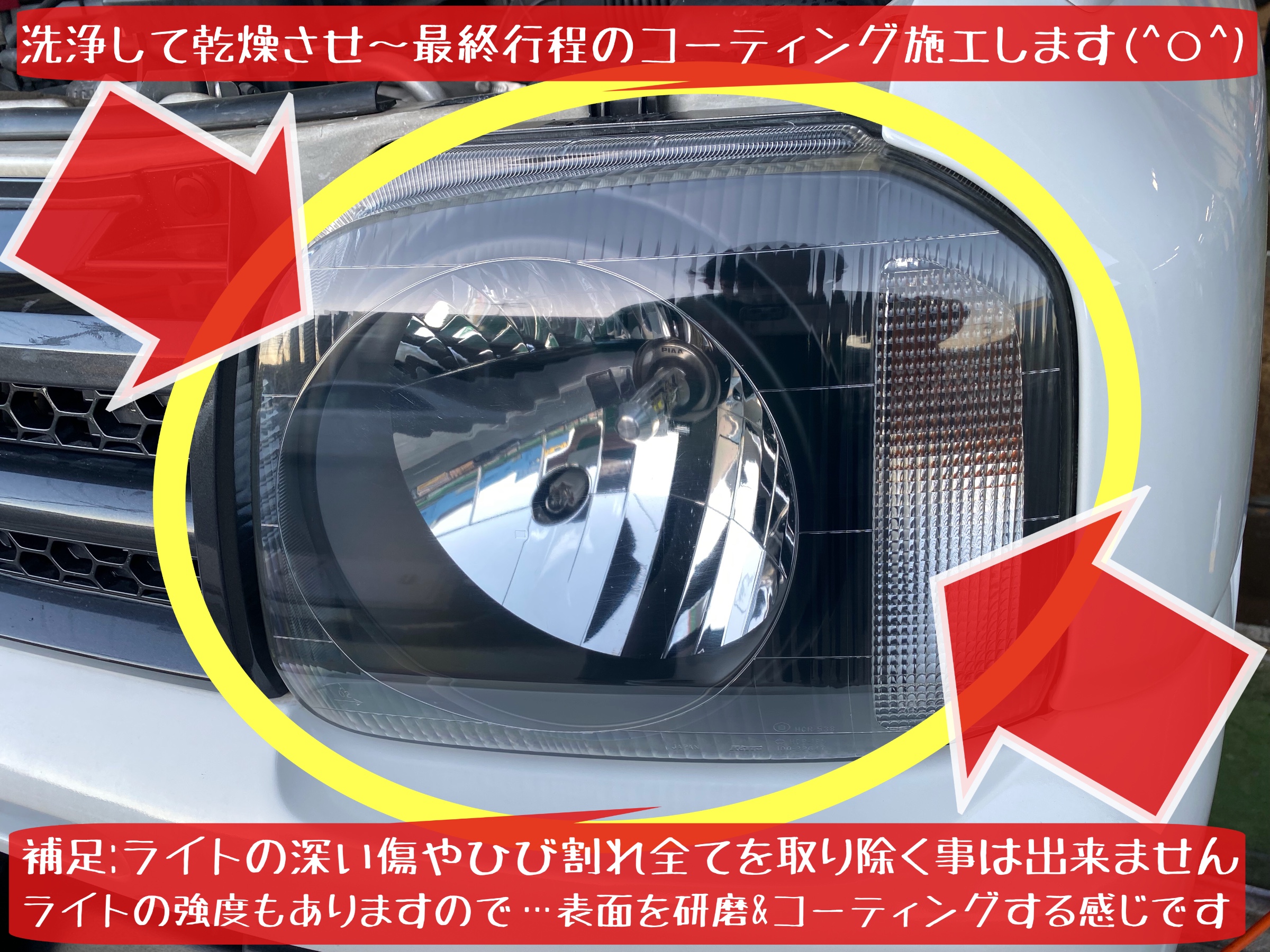 補足:①ライトの状態や作業状況によって…施工時間は変動します ②車種やライトの状態によっては…施工出来ない場合もあります