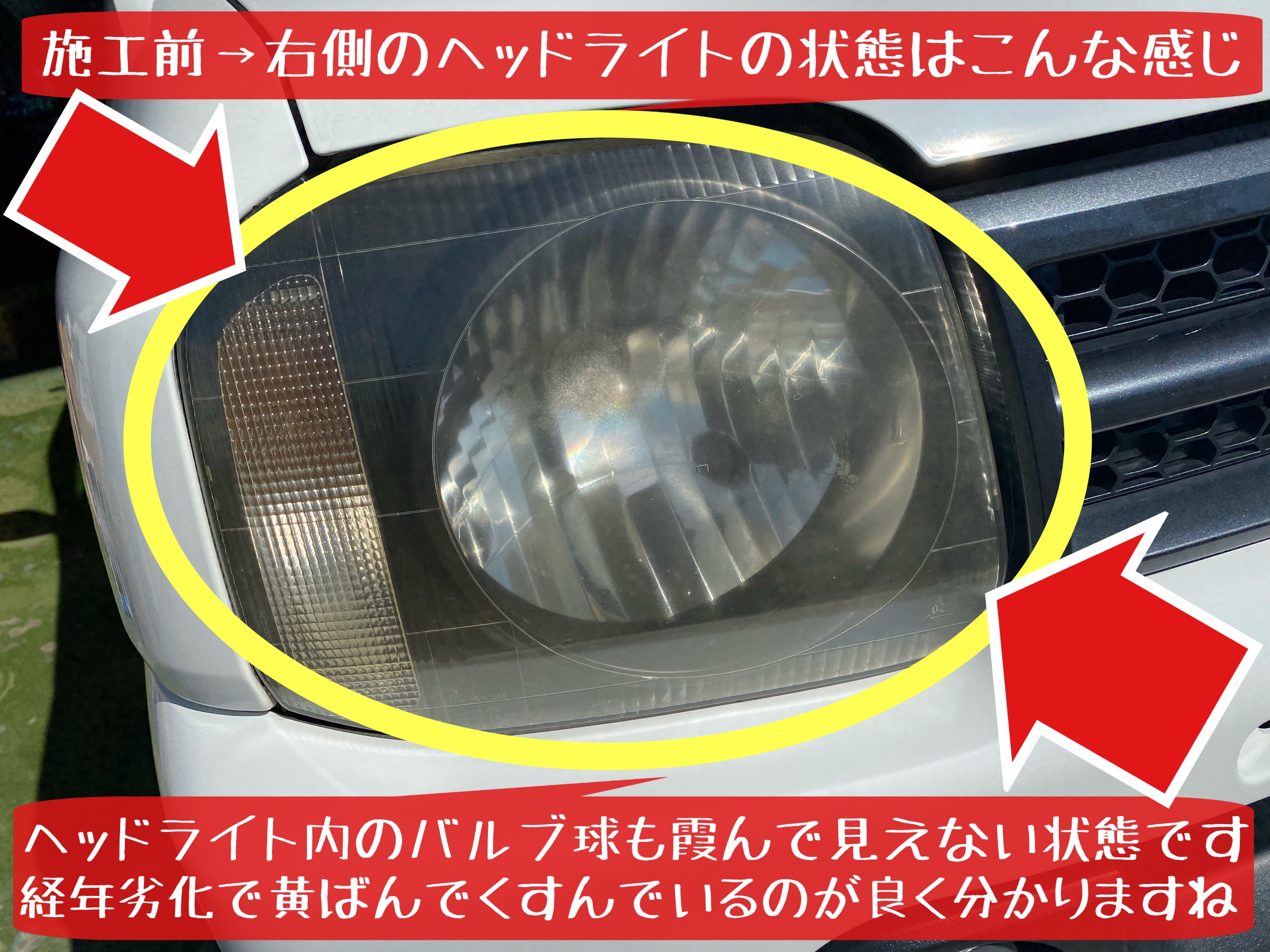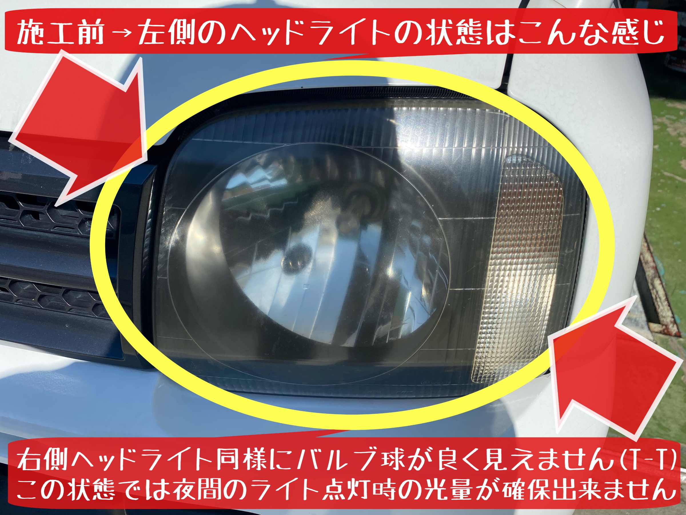 ⬇︎ 経年劣化で…ヘッドライトもこんな状態です(T-T)