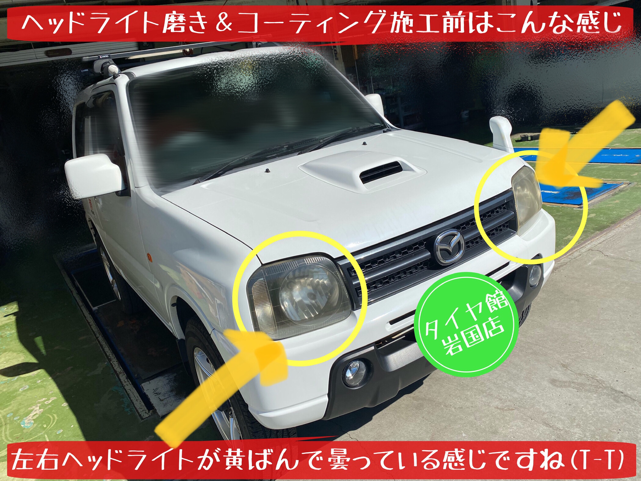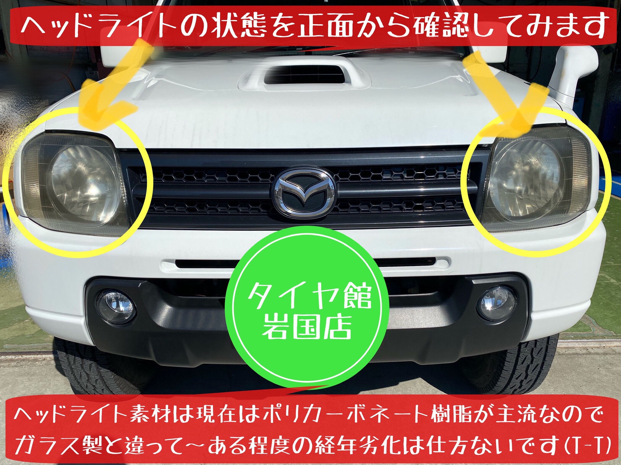 タイヤ館岩国店 では…① 簡易的なヘッドライトクリーニング ②ヘッドライト磨き&コーティング も施工していますので…気になる方は相談して下さいね。