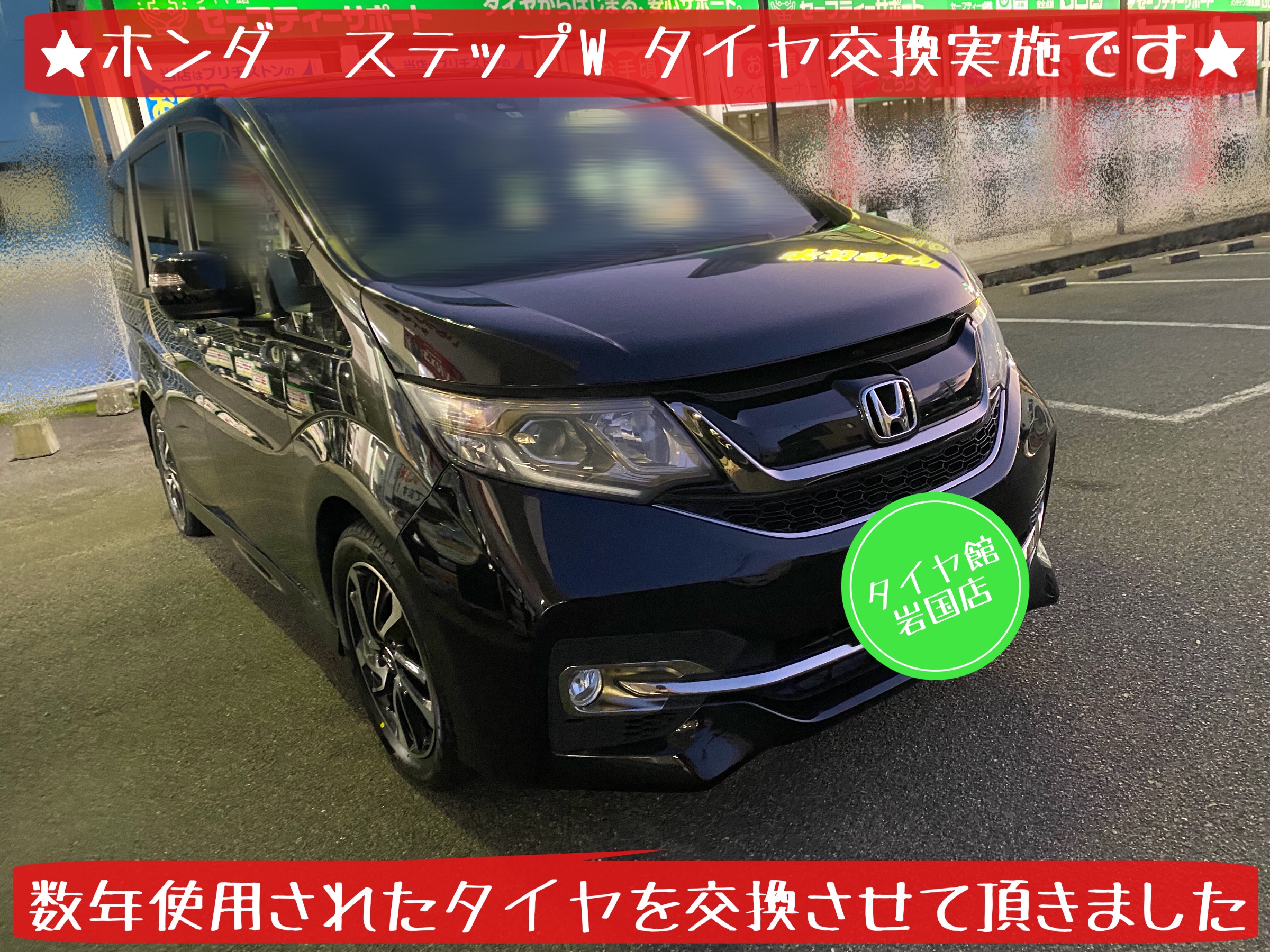 岩国市周辺で ホンダ ステップワゴン タイヤ交換 ホイール交換 オイル交換 バッテリー交換 ワイパー交換 エアコンフィルター交換 アライメント調整 など検討されている方は…スタッフまで気軽に相談して下さいね