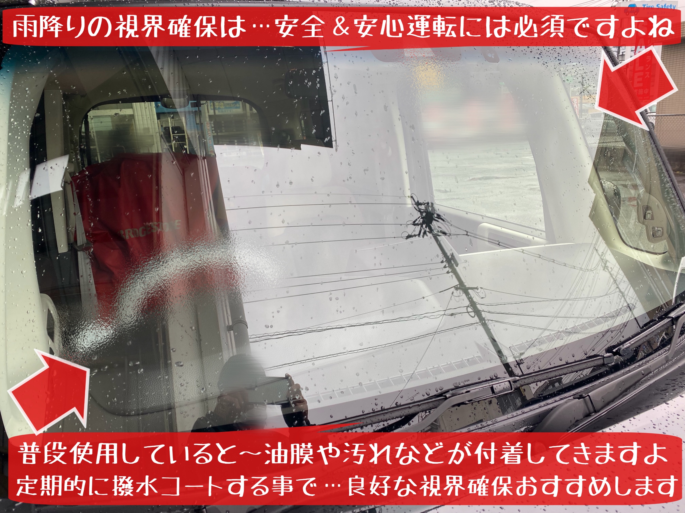 愛車の窓ガラス…特にフロントガラスの視界確保は必須ですよね。撥水コーティング施工する事で〜良好な視界確保してみませんか。