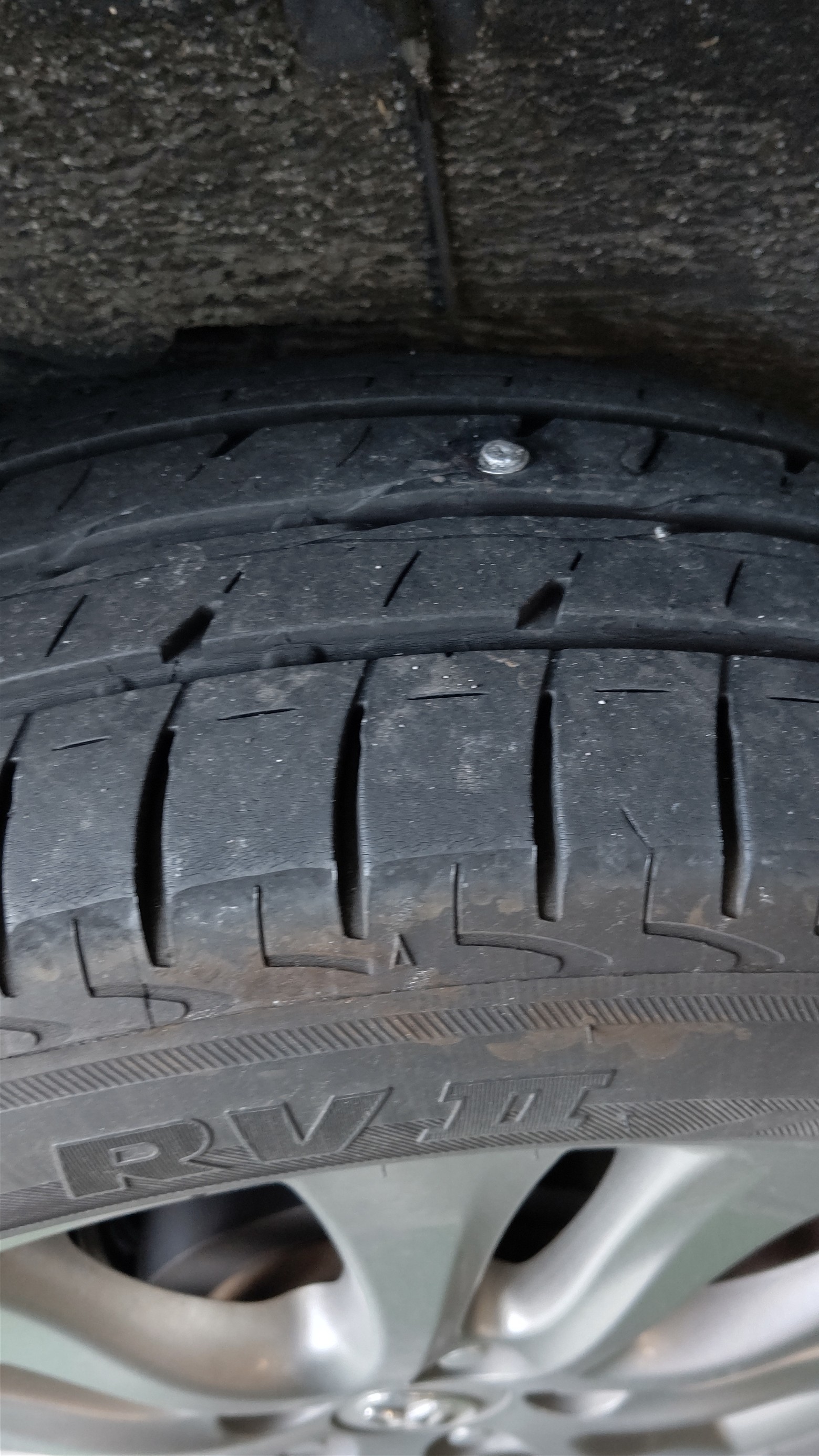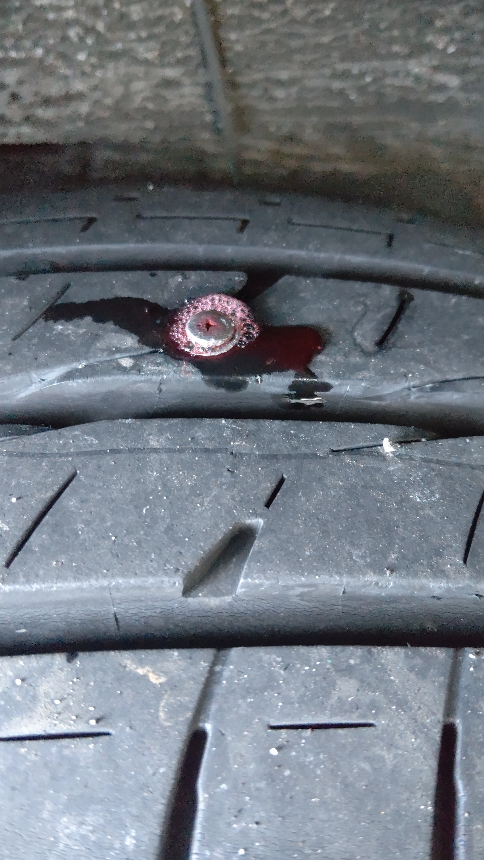 ヴォクシーのパンクからタイヤ交換になりました。 ポスト 2022年3月4日 今回はヴォクシーのお客様がタイヤに何か刺さってるとの事で来店されました。 まずは見てみます。 あちゃー、刺さってますよ。確かに。 パンクの確認をしてみます。 泡が出てきたので空気が漏れてる証拠ですね。 更にフロントタイヤはすり減ってたので、今後の事も考えて値上げ前にタイヤを4本購入し、有料のパンク補償サービスに入っていただく事になりました。 外したタイヤの中を見てみますと しっかり貫通しておりました。 タイヤ館岩国では、ブリヂストン製のタイヤを4本購入の場合、有料ですがパンク補償サービスに入れます。気になる方はスタッフまでお問い合わせください。 カテゴリ:タイヤ関連 タイヤ関連 担当:池田