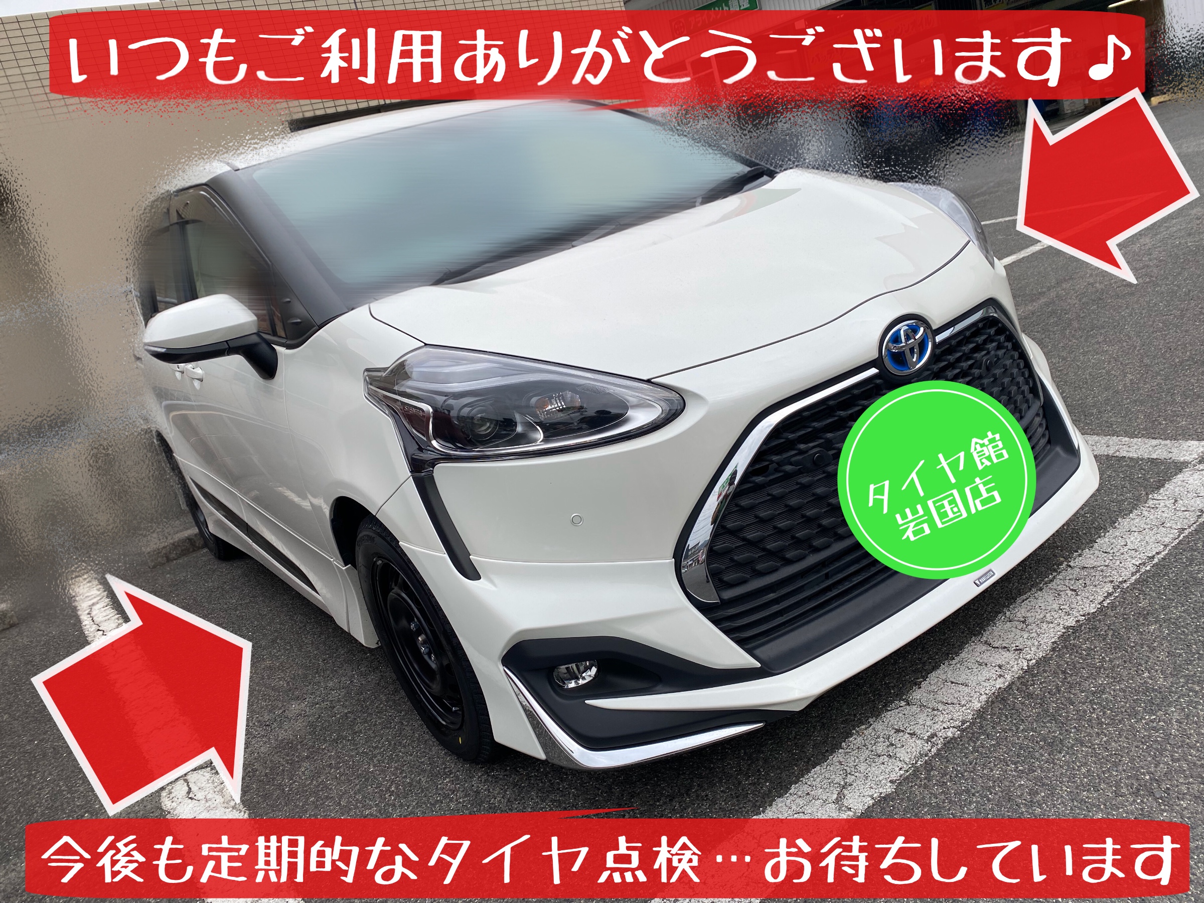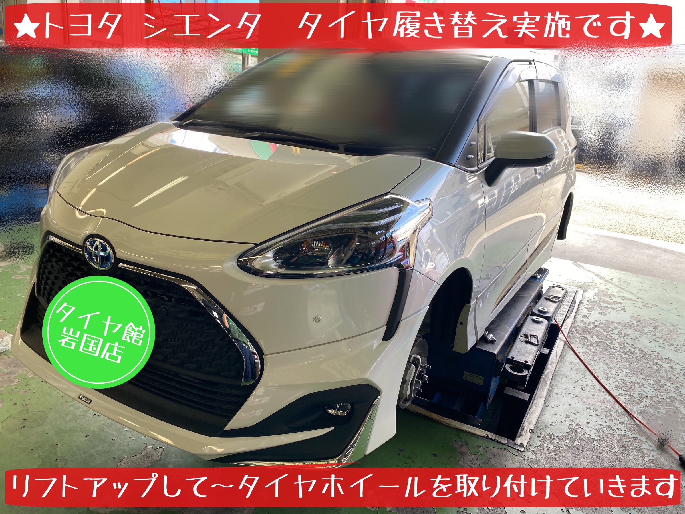 岩国市周辺で トヨタ シエンタ タイヤ交換 ホイール交換 オイル交換 バッテリー交換 ワイパー交換 エアコンフィルター交換 アライメント調整 タイヤ履き替え 脱着 付け替え など検討されている方は タイヤ館岩国店 スタッフまで気軽に相談して下さいね