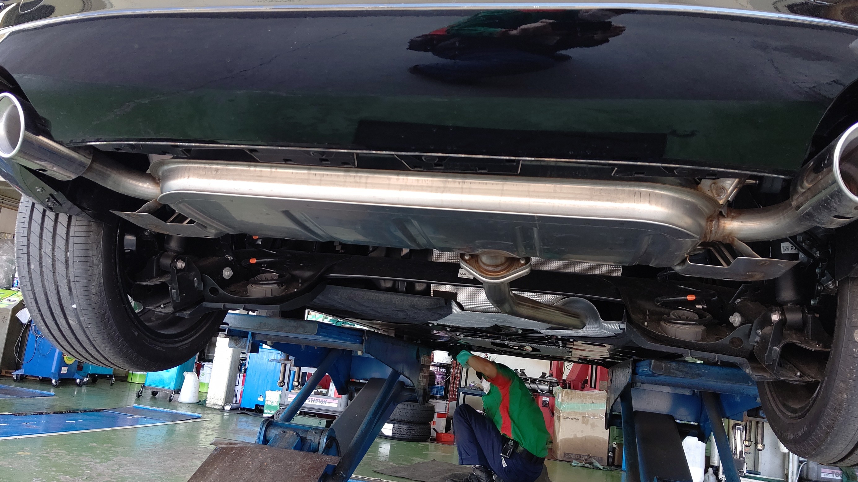 MAZDA3はこの純正のマフラーも空力を考慮してリアディフューザーの役割もしてるそうです。