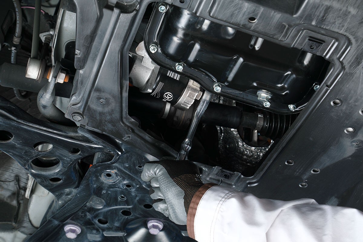 最後にドレンボルトからのオイル漏れなどの最終チェックを行います。
