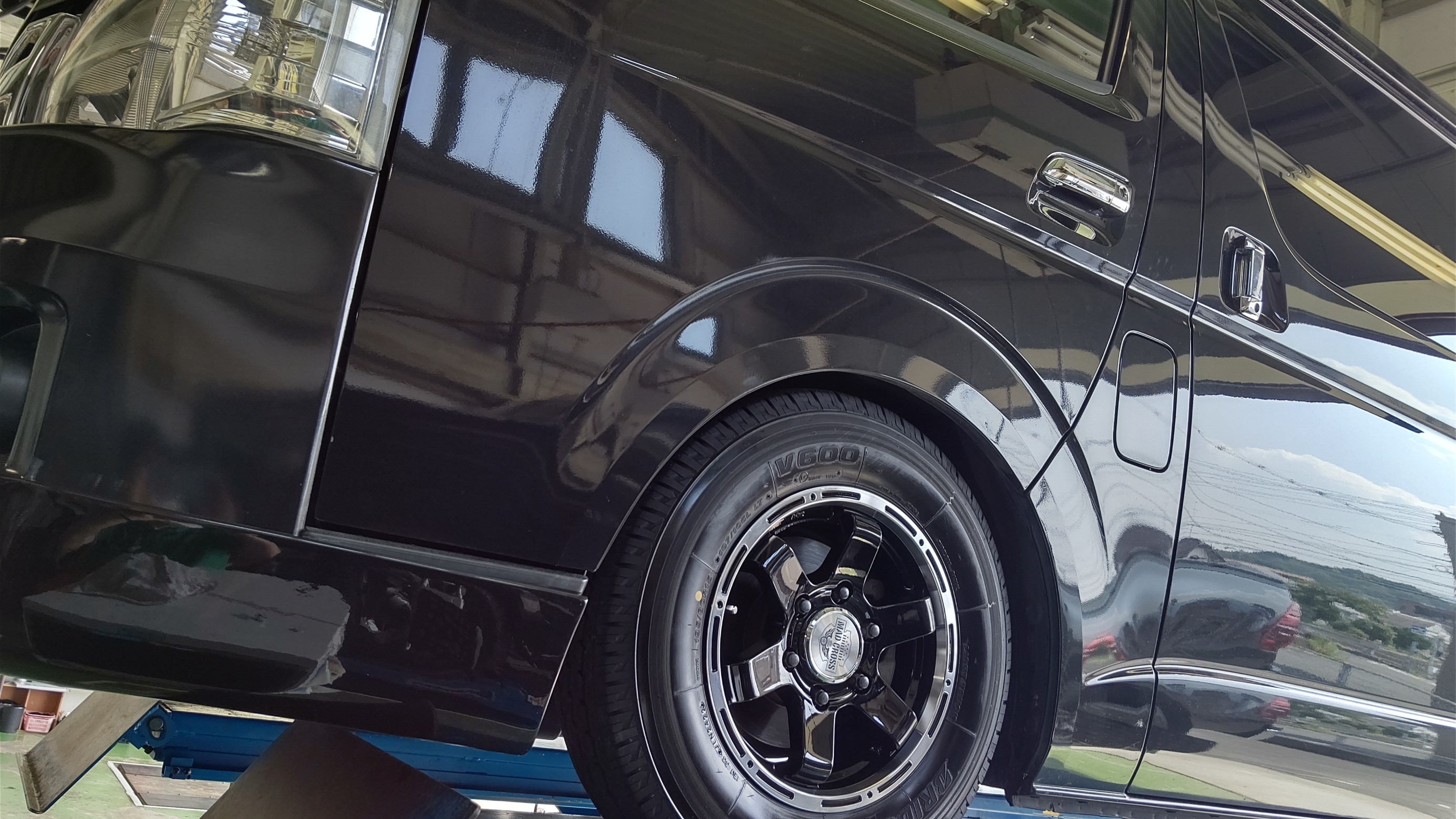 今回はハイエースのお客様の依頼でタイヤとホイールの取り付けをしました。