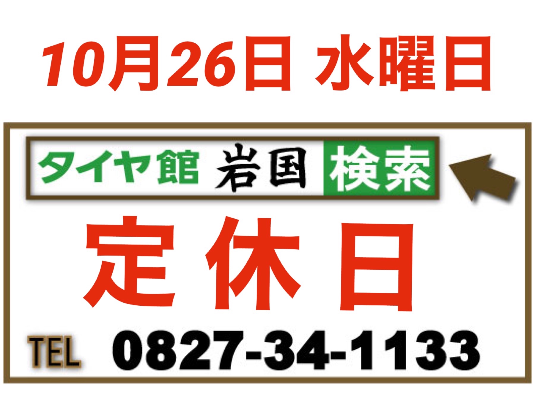 10月 26日 水 曜 は 定 休 日 と な り ま す 。