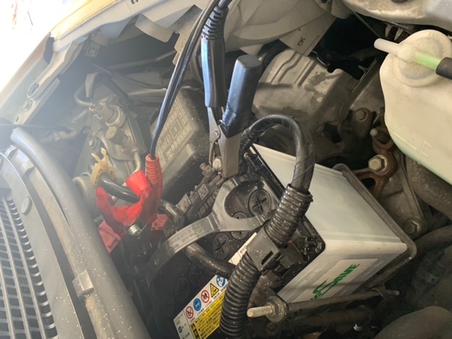 10月も下旬。朝晩一段と冷え込みを感じる季節となりました。そんなこの季節におすすめしたいのが『バッテリーの点検』です!真冬ともなると更に早朝の気温はグッと下がりバッテリーのトラブル発生件数も増えてきます。タイヤ館の無料安全点検の点検項目に入っている『バッテリーの点検』、タイヤ館では電圧計でバッテリーの電圧を測定しております。今回は店舗の代車のバッテリーをモデルにして点検しました。