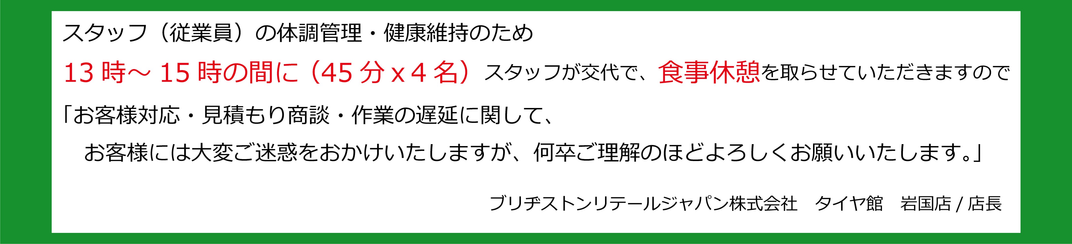 担当:タ イ ヤ 館 岩 国 店