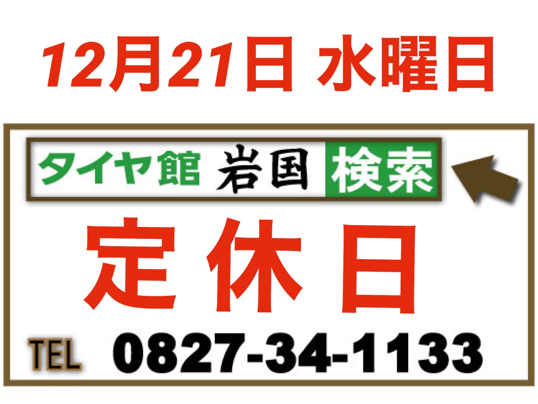 12月21日(水) 定 休 日 と な り ま す