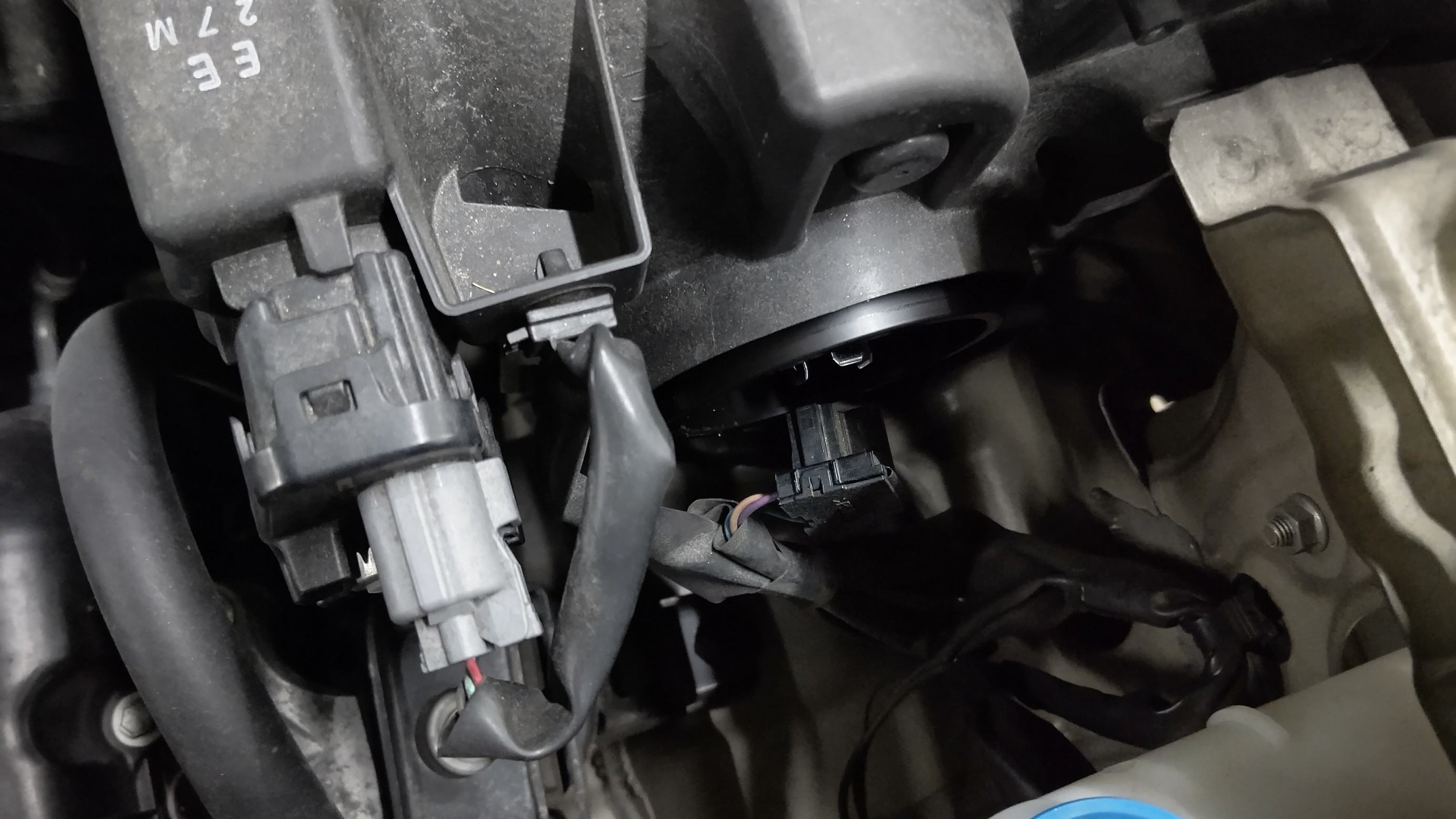 ボンネットを開けてライトの裏側のカプラーを外します。