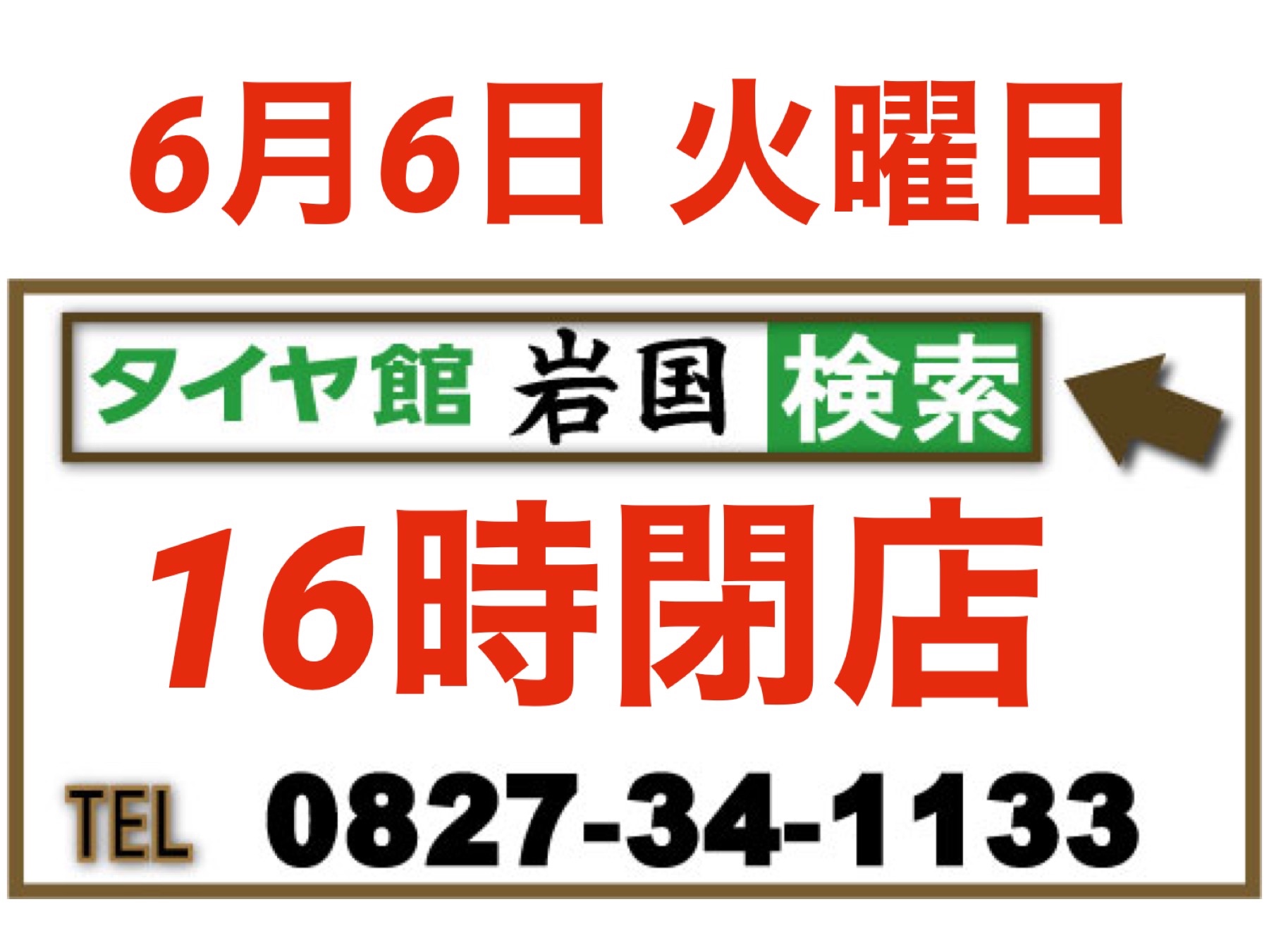 6月6日 火曜日 決算棚卸しのため 16時閉店となります。